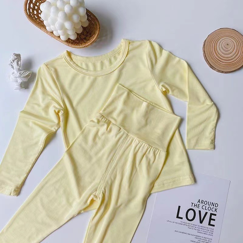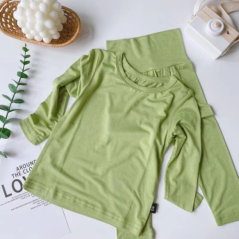 어린이 잠옷 모달 봄과 가을 높은 허리 배꼽 보호 홈 의류 소년 소녀 아기의 가을 옷과 바지 속옷 세트