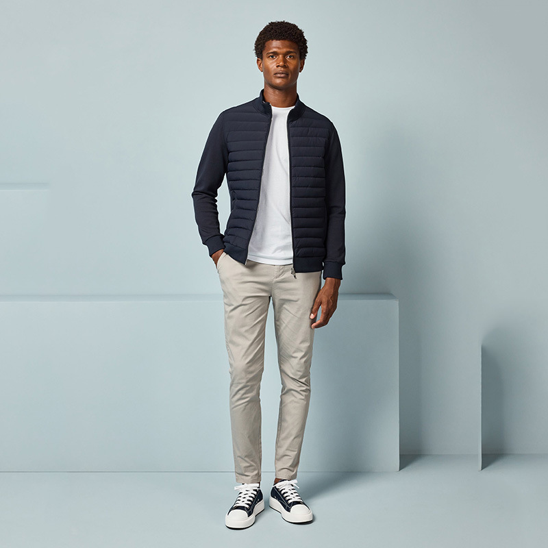 독립 스테이션 전용 유럽 및 미국 다운 재킷, 가볍고 얇은 스탠드 칼라 스플라이스 니트 재킷, 가을 겨울 남성 재킷 재고 있음스토어 가기