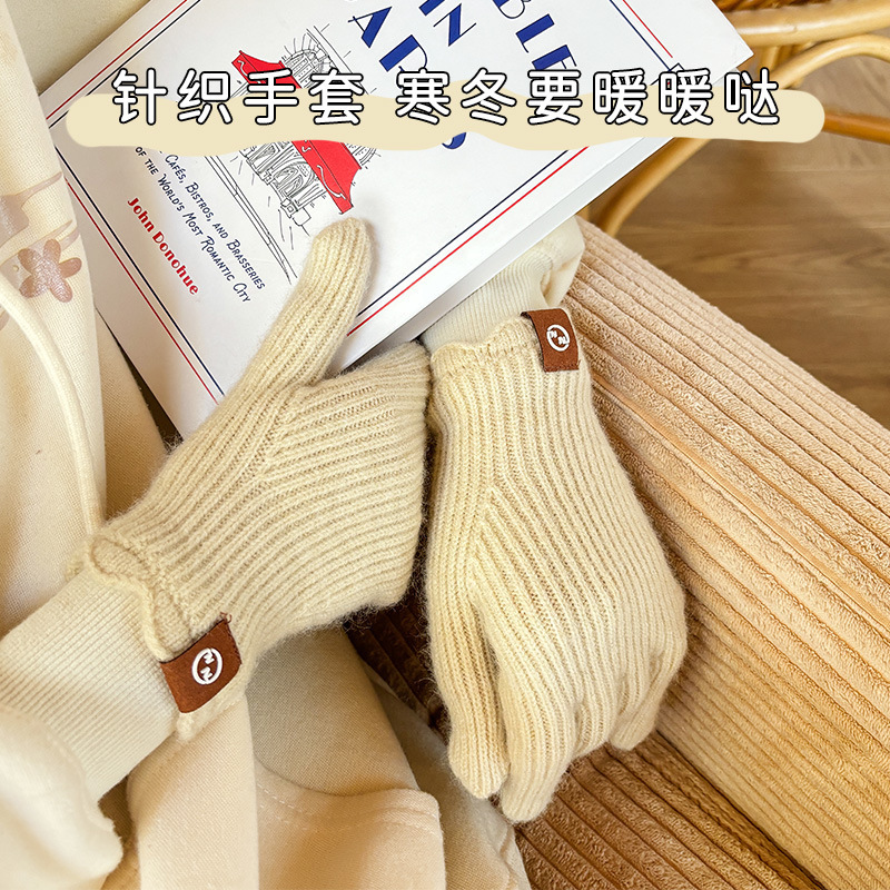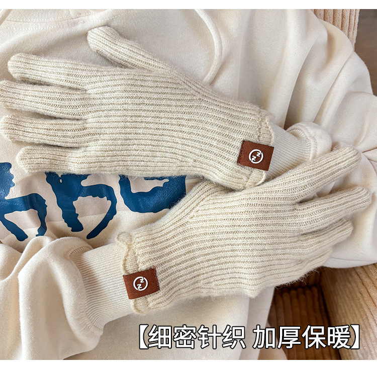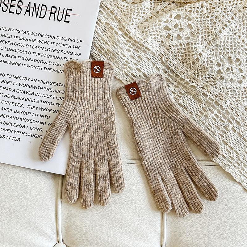 2024 새로운 겨울 솔리드 컬러 레이스 캐시미어 봉제 니트 장갑 귀여운 다섯 손가락 열린 손가락 터치 스크린 따뜻한 장갑