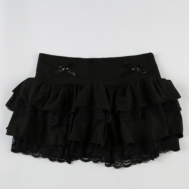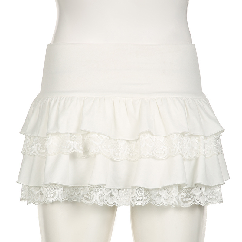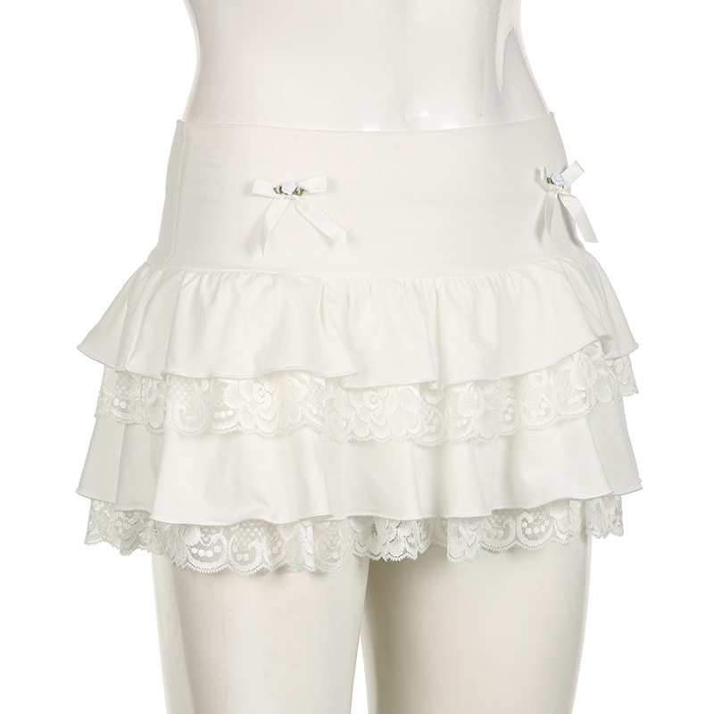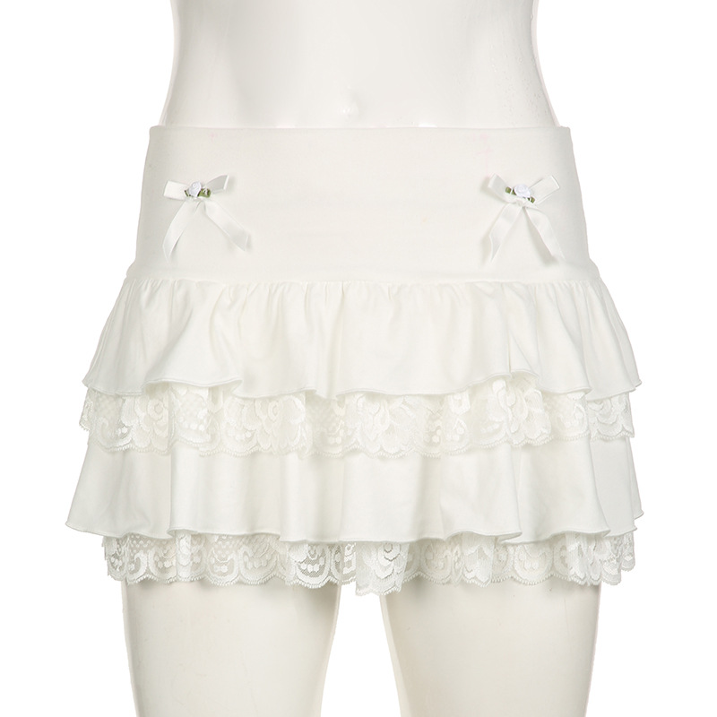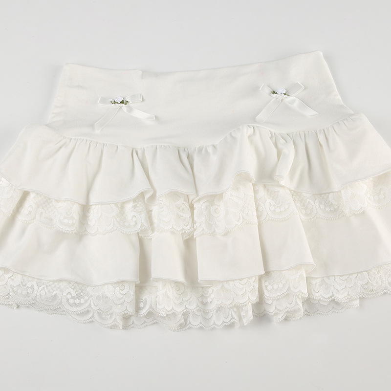 활 꽃 장식 레이스 바느질 케이크 스커트 달콤하고 매운 스타일 소녀 단색 낮은 허리 올 매치 짧은 치마