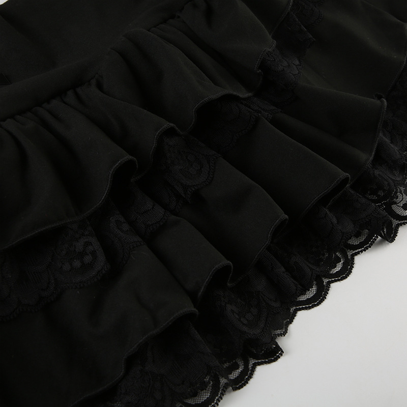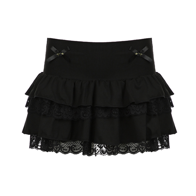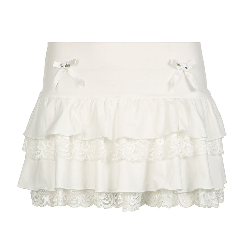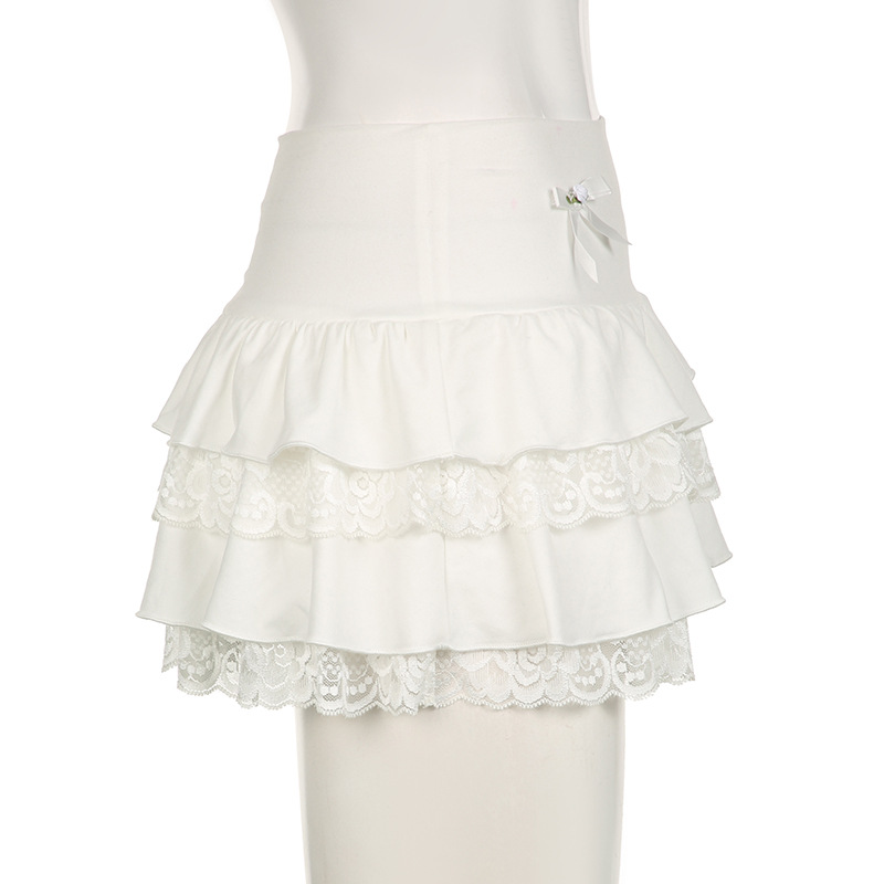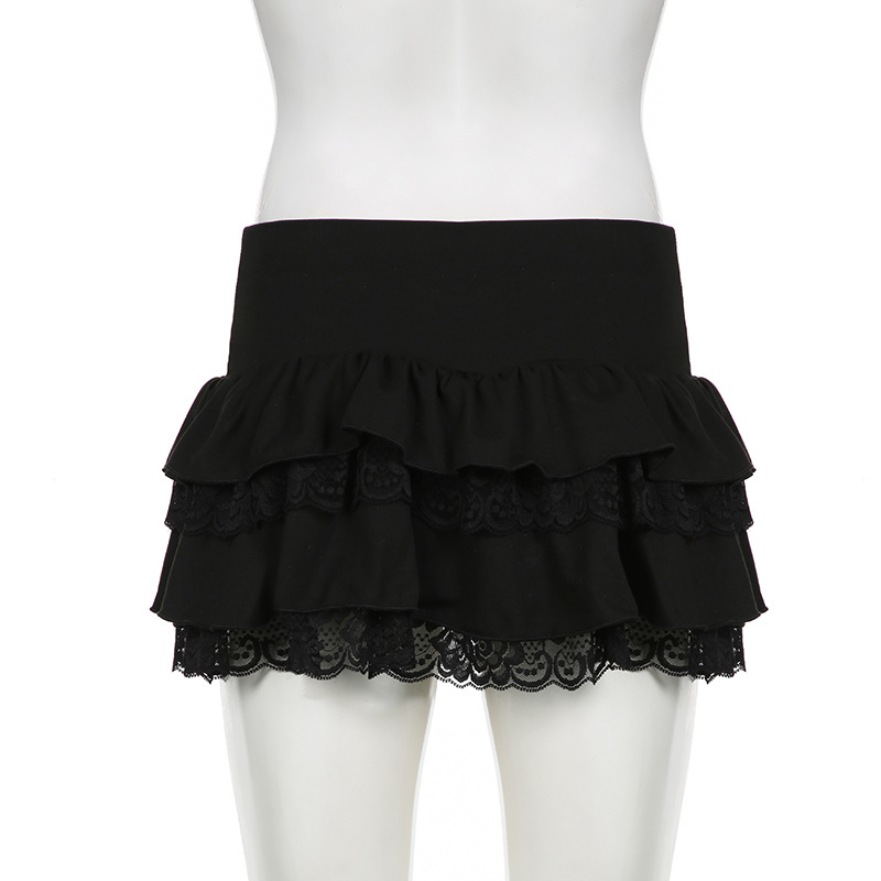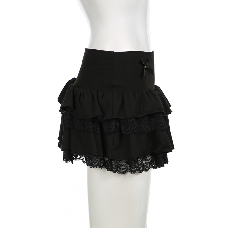 활 꽃 장식 레이스 바느질 케이크 스커트 달콤하고 매운 스타일 소녀 단색 낮은 허리 올 매치 짧은 치마