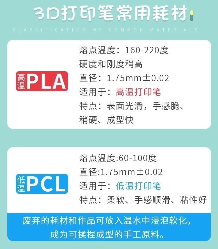 3d 인쇄 펜 소모품 PLA 고온 재료 1.75mm 저렴한 PLA 코일 PCL 소모품 Xiao Ma Liang Shen Jia Tai