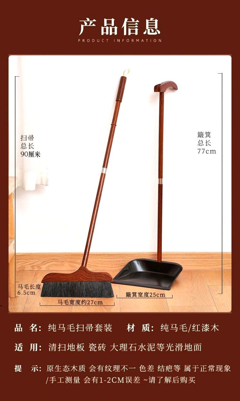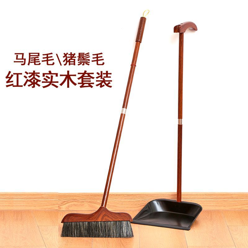 순수한 말꼬리 양모 수제 단단한 나무 빗자루 세트 가정용 빗자루 조합 빗자루 청소 쓰레기통이없는 끈적 끈적한 Jiatai스토어 가기