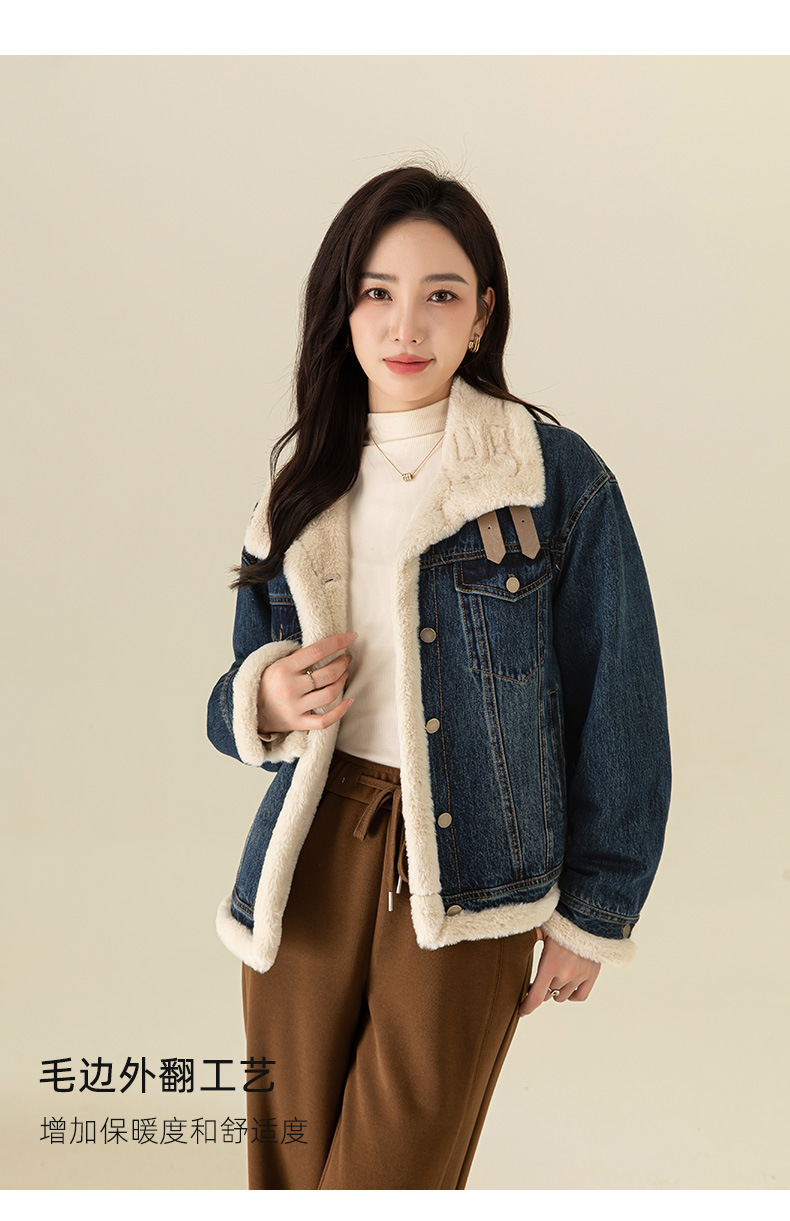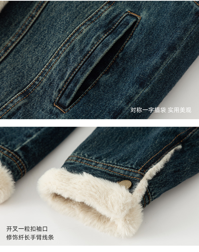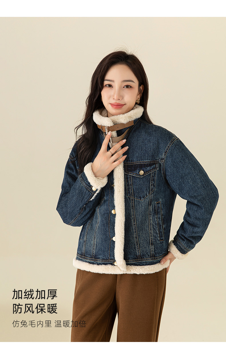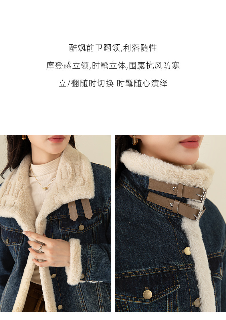 이페이 한국 버전의 올 매치 오토바이 데님 플러스 벨벳 코트 여성의 겨울 2024 새로운 두꺼운 재킷 따뜻한면 패딩 재킷스토어 가기