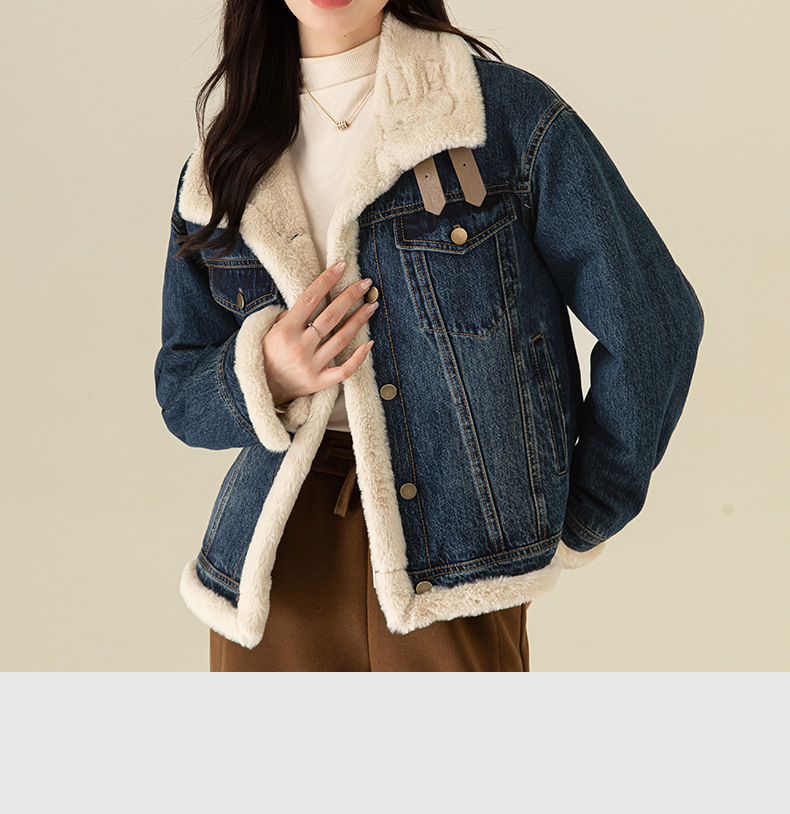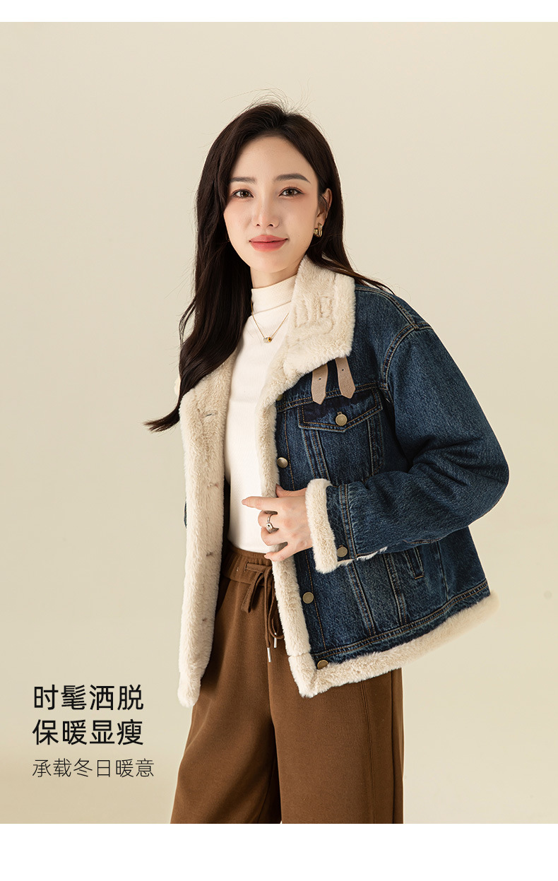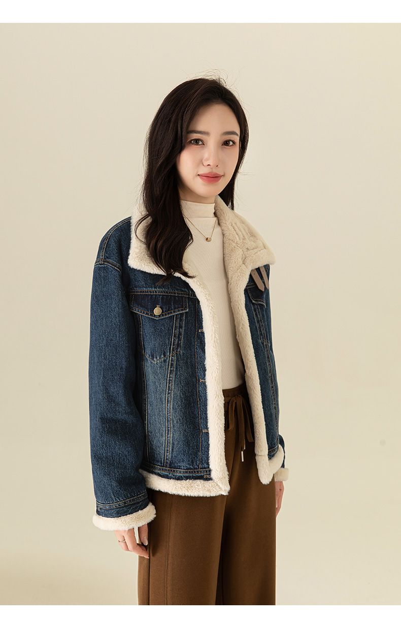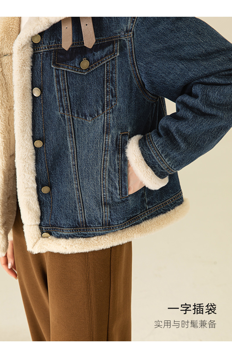 이페이 한국 버전의 올 매치 오토바이 데님 플러스 벨벳 코트 여성의 겨울 2024 새로운 두꺼운 재킷 따뜻한면 패딩 재킷스토어 가기