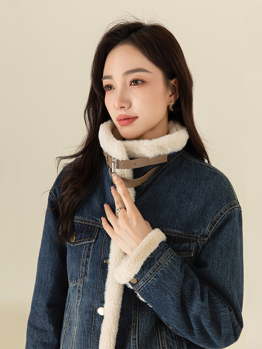 이페이 한국 버전의 올 매치 오토바이 데님 플러스 벨벳 코트 여성의 겨울 2024 새로운 두꺼운 재킷 따뜻한면 패딩 재킷