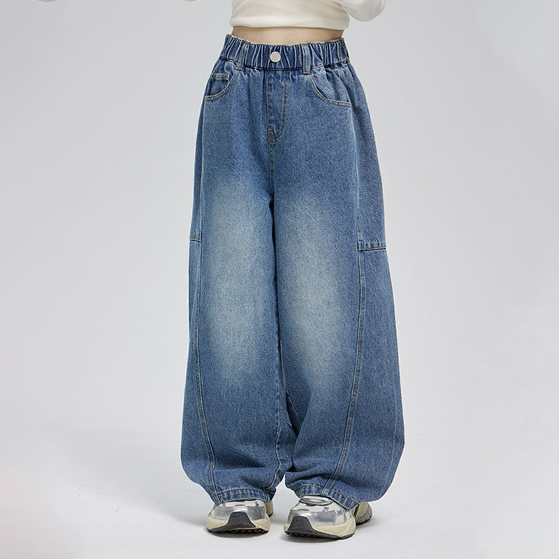 여아용 와이드 레그 카우보이 팬츠 2025 봄 가을 스타일 아동 디자인 스트레이트 팬츠 중대형 아동복 캐주얼 롱팬츠스토어 가기