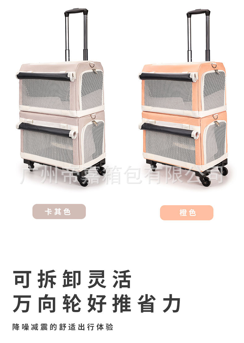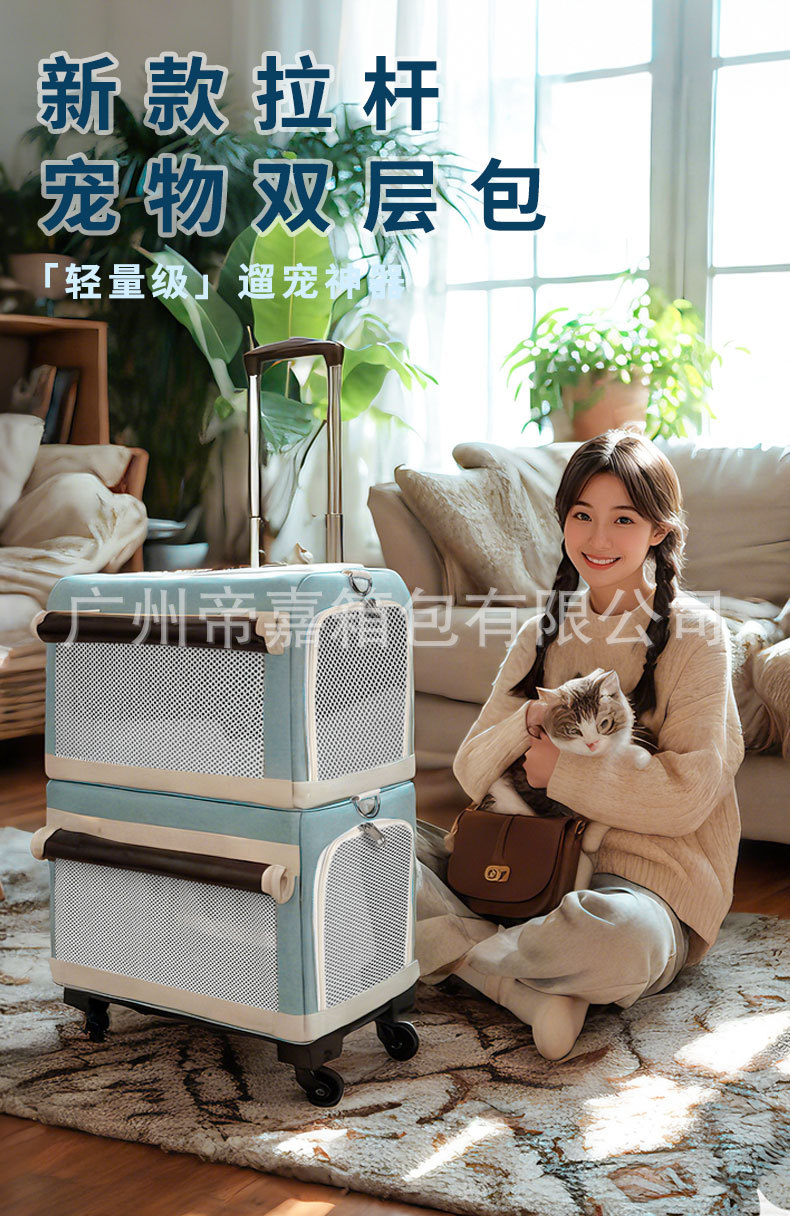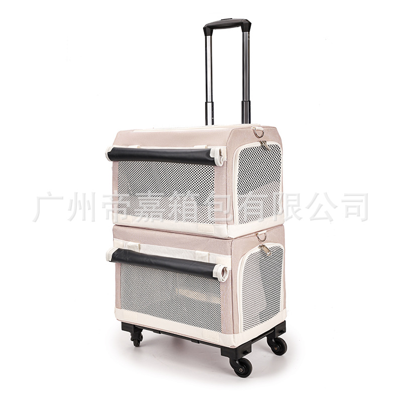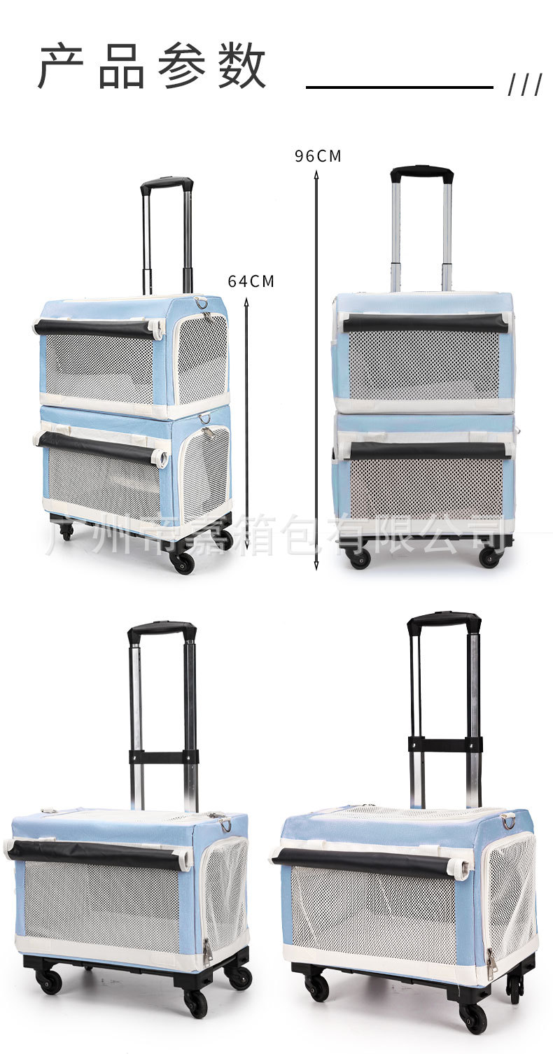 애완 동물 상하 더블 레이어 트롤리 케이스 분리 가능한 유니버설 휠 고양이 가방 발신 휴대용 통기성 휴대용 개 가방 대용량
