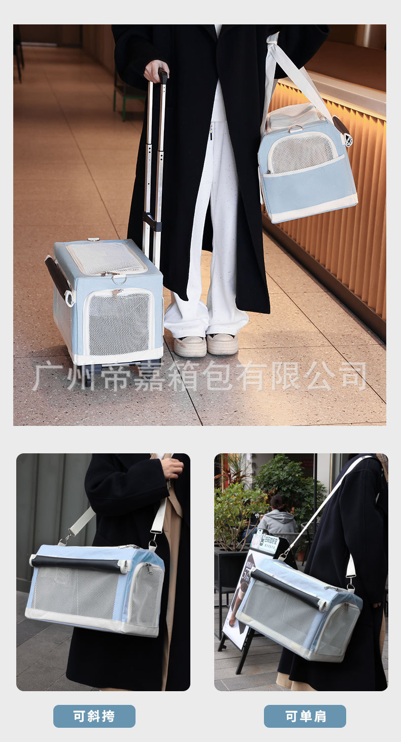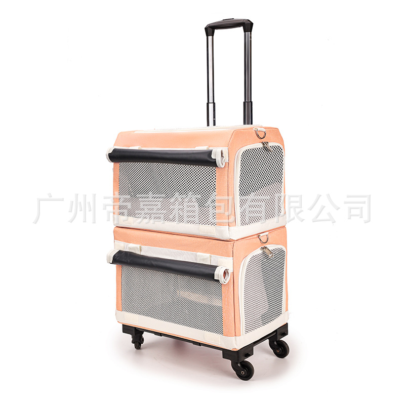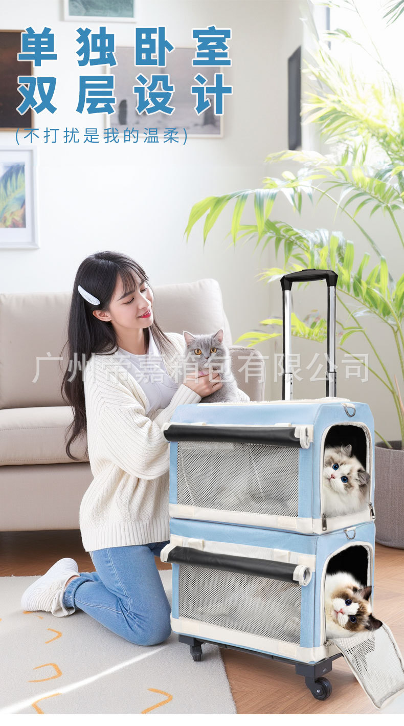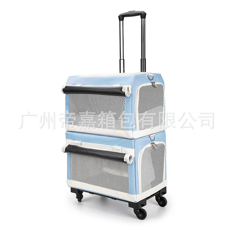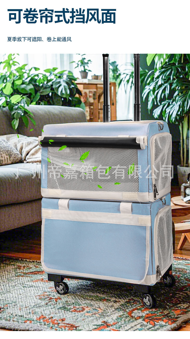애완 동물 상하 더블 레이어 트롤리 케이스 분리 가능한 유니버설 휠 고양이 가방 발신 휴대용 통기성 휴대용 개 가방 대용량스토어 가기