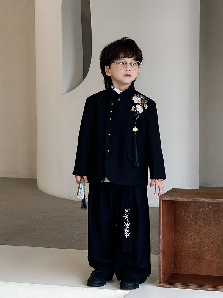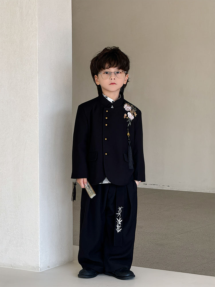 소년 2025 봄과 가을 새로운 복숭아 꽃 자수 작은 양복 아동복 정장 아동복 유행 드롭 배송
