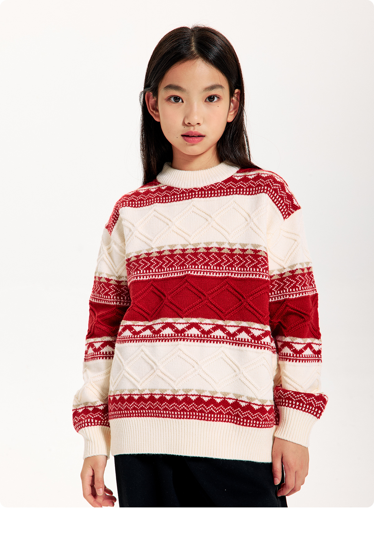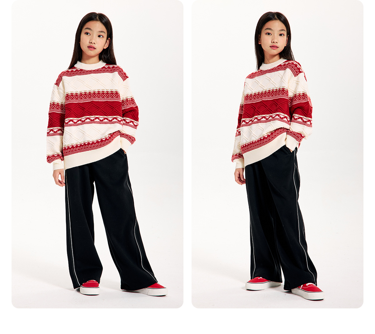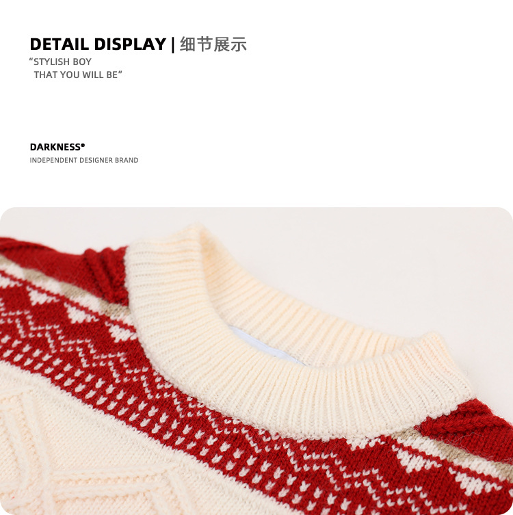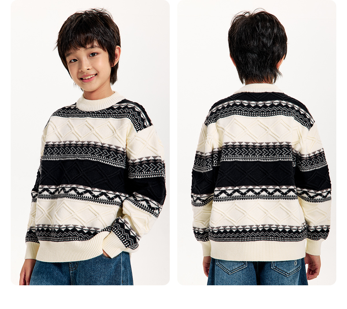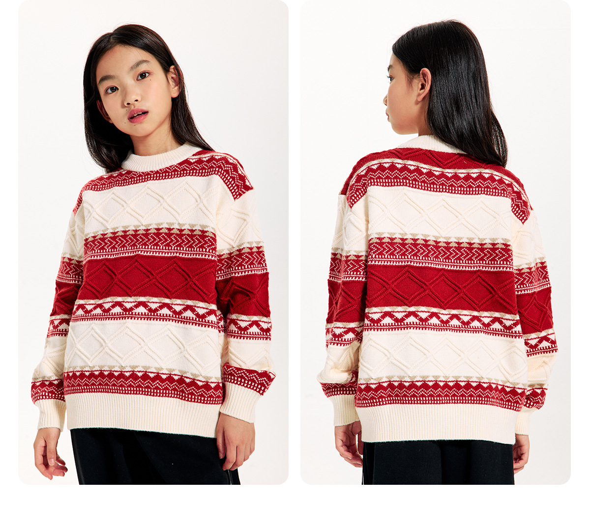 DK 아동복 2024 가을과 겨울 일본 스타일 빈티지 짜는 꽃 크루 넥 대조 컬러 스웨터 어린이 소녀 소년 중 큰 어린이 니트 스웨터스토어 가기