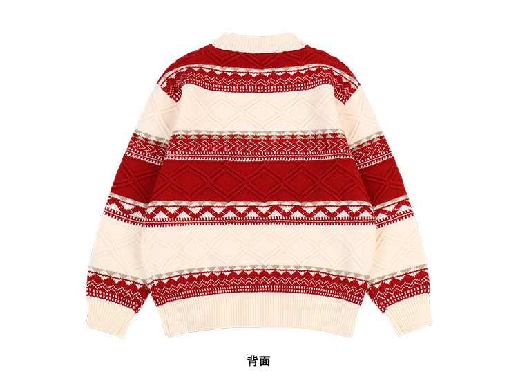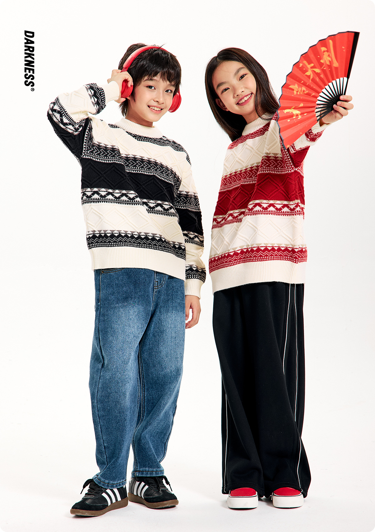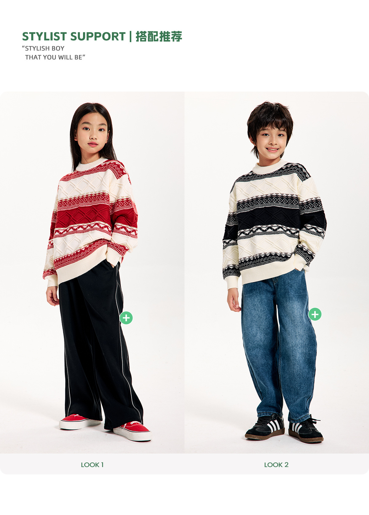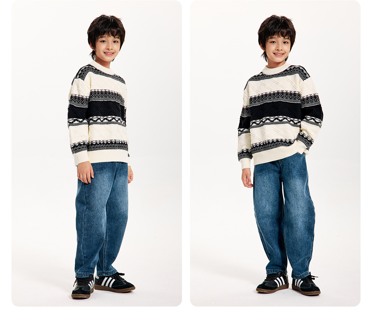 DK 아동복 2024 가을과 겨울 일본 스타일 빈티지 짜는 꽃 크루 넥 대조 컬러 스웨터 어린이 소녀 소년 중 큰 어린이 니트 스웨터스토어 가기
