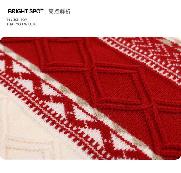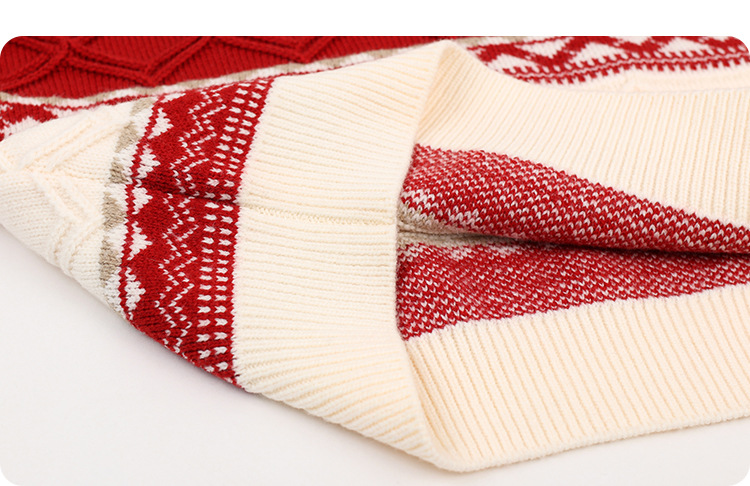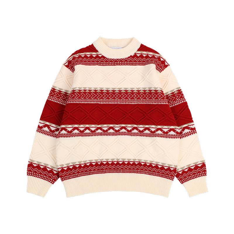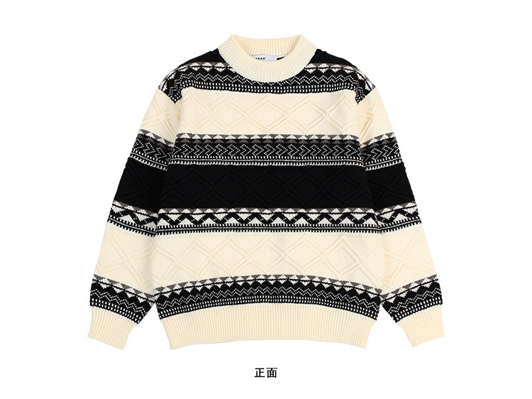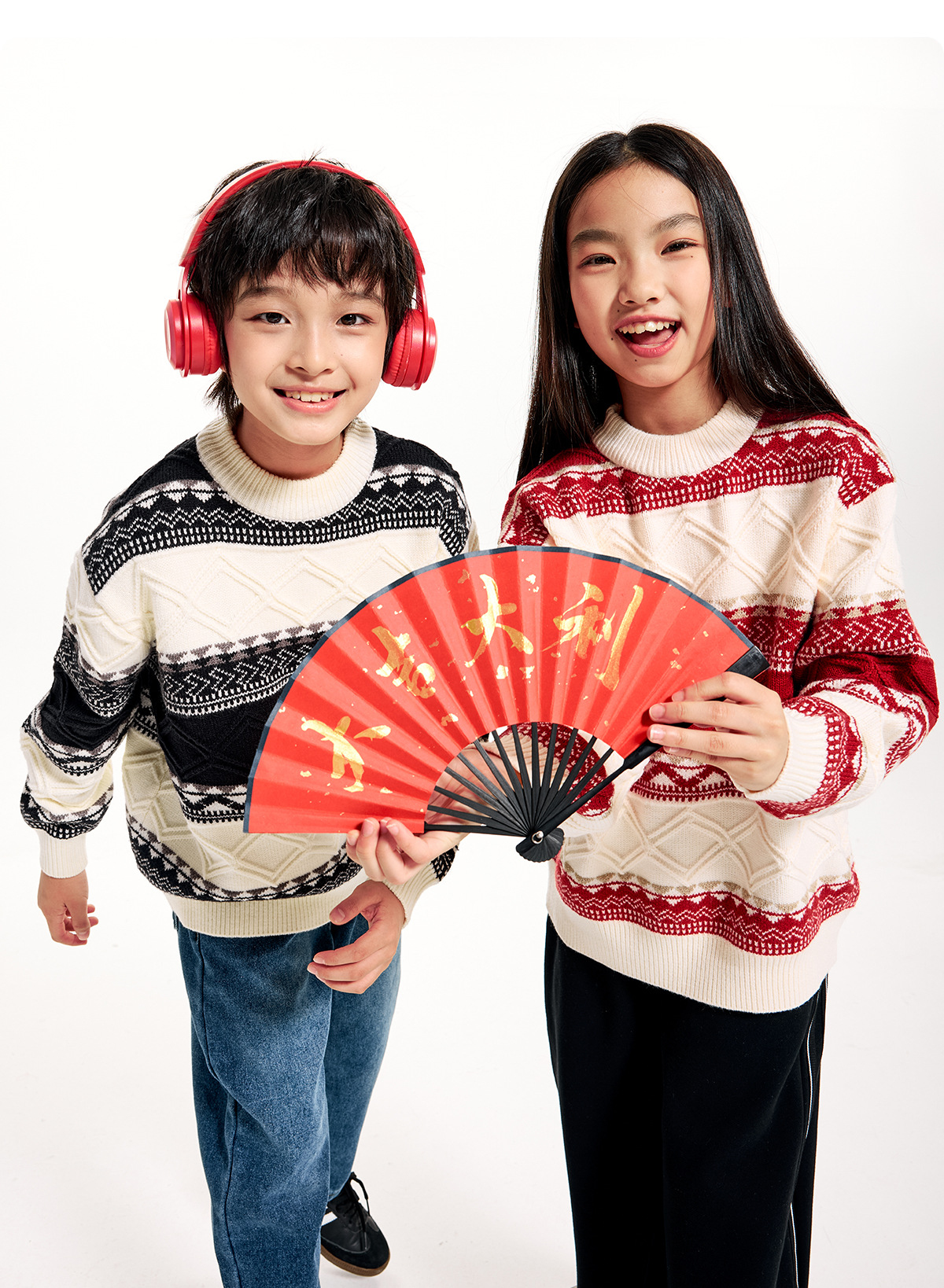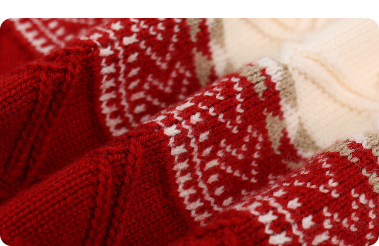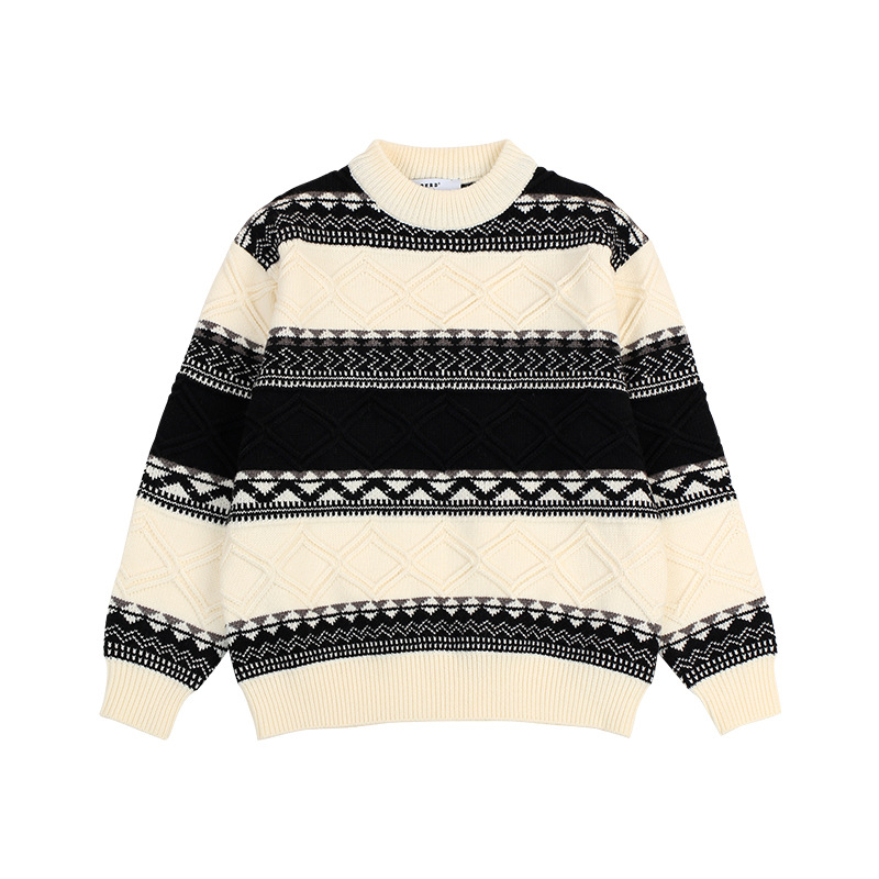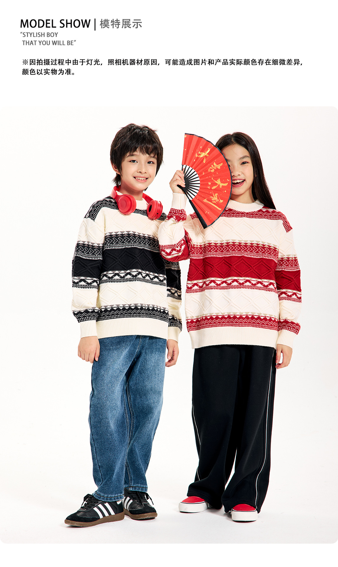 DK 아동복 2024 가을과 겨울 일본 스타일 빈티지 짜는 꽃 크루 넥 대조 컬러 스웨터 어린이 소녀 소년 중 큰 어린이 니트 스웨터스토어 가기