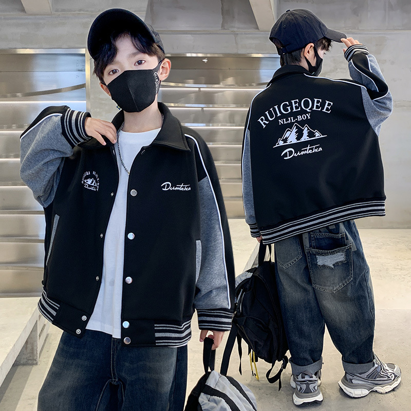 소년 가을 겨울 두꺼운 재킷 2025 새로운 스타일 중대형 소년 봄, 가을 어린이 패션 스플 라이스 야구 유니폼 트렌드