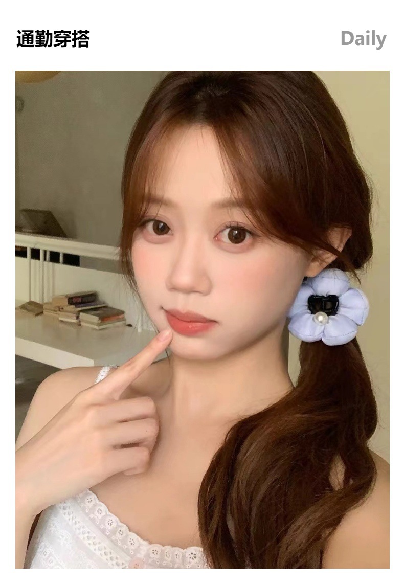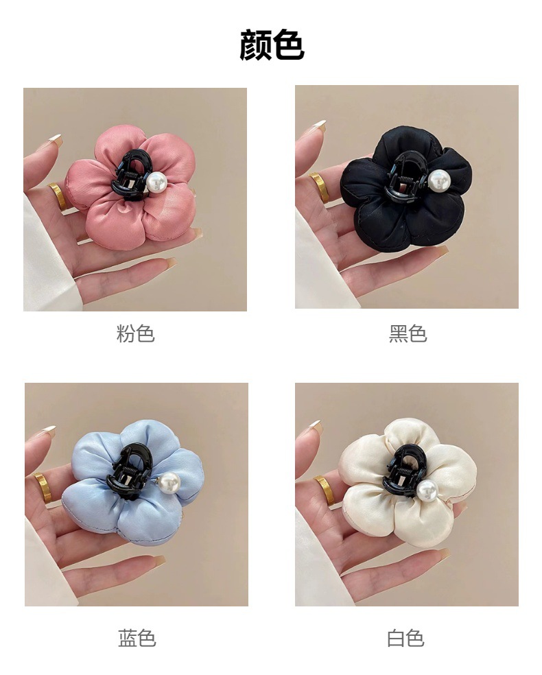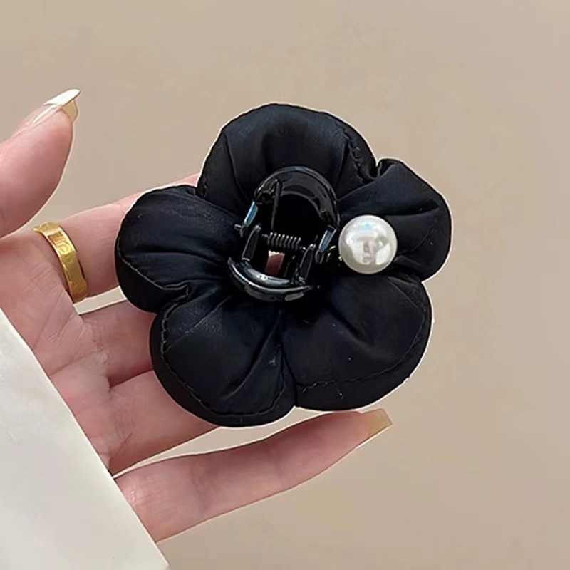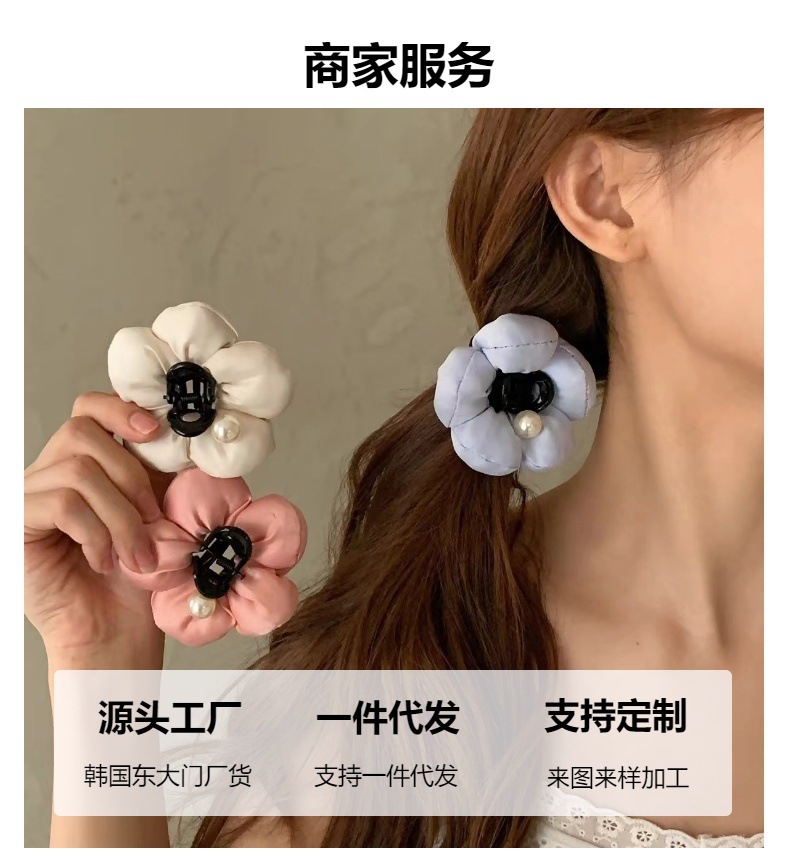 꽃 퍼프! 진주 새싹 캐치 클립! 달콤한 기질 뒤 머리 클립 반 묶인 상어 클립 머리핀 헤어 액세서리