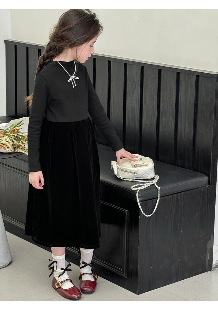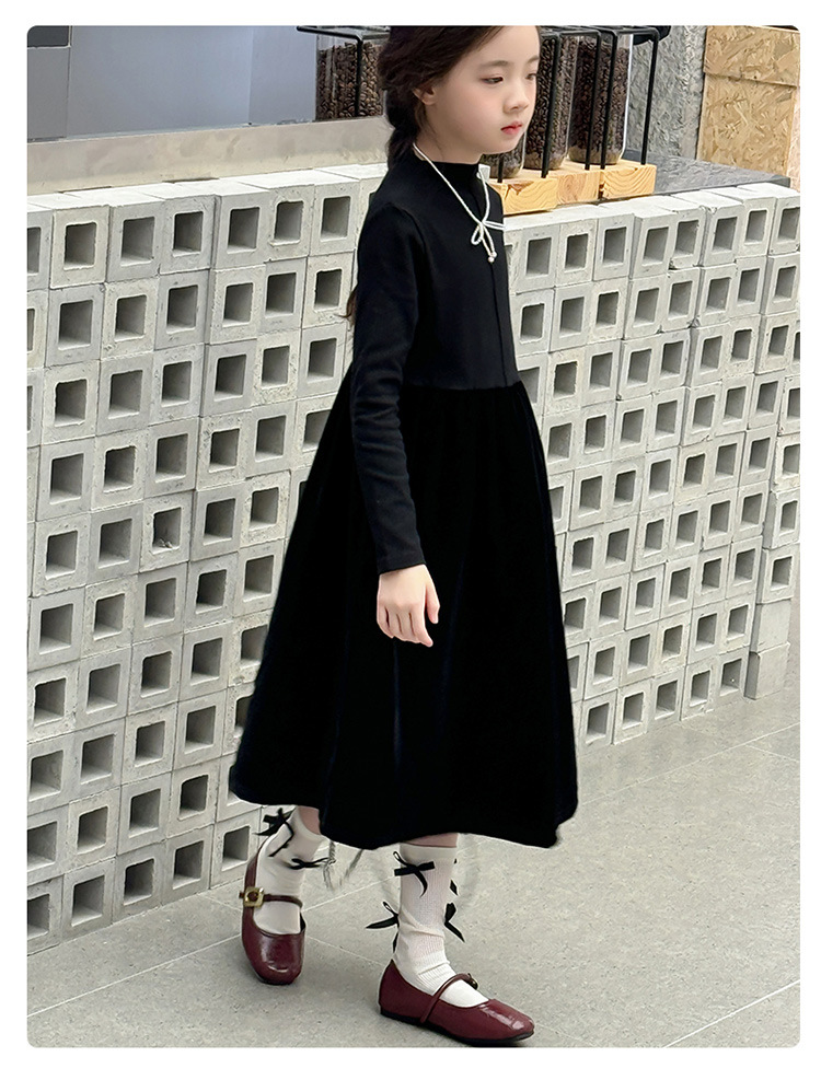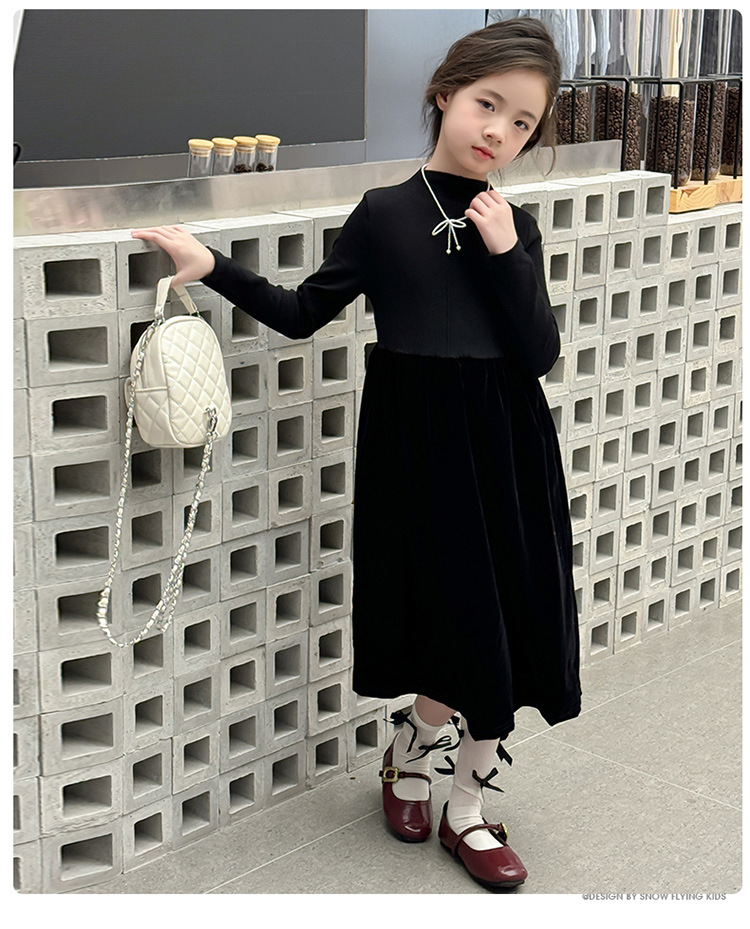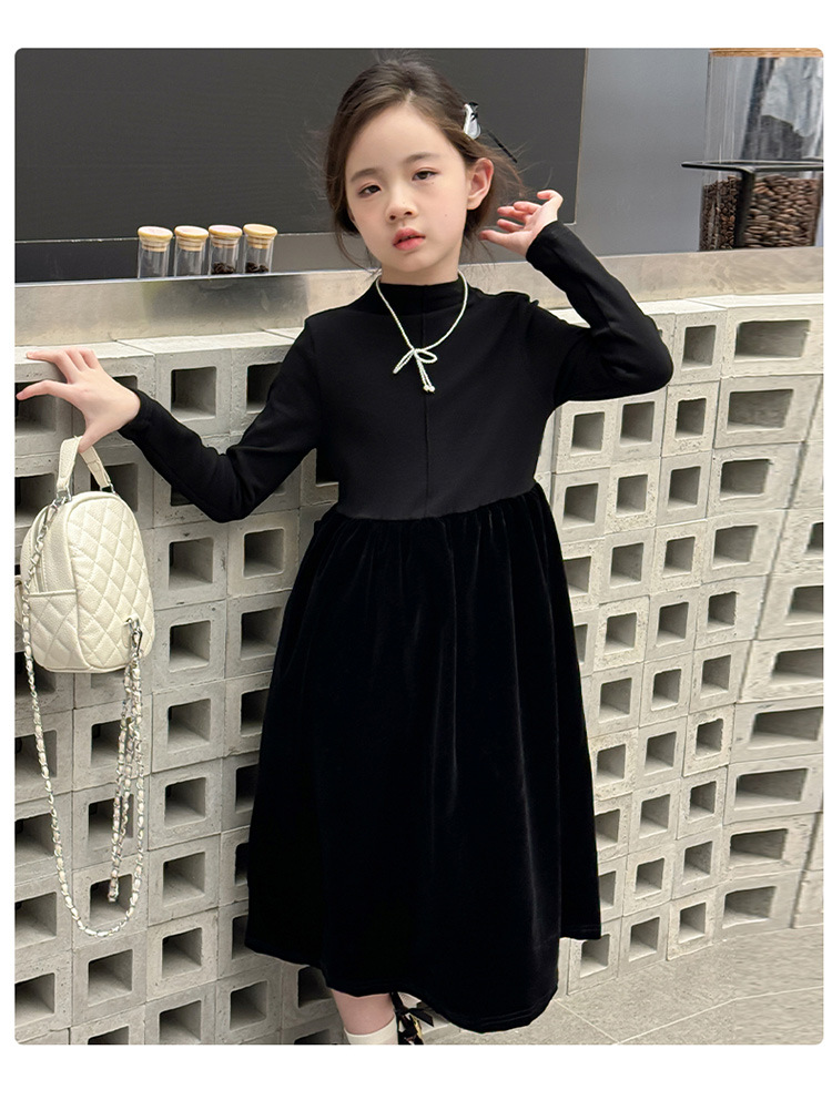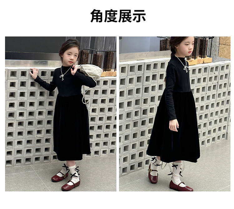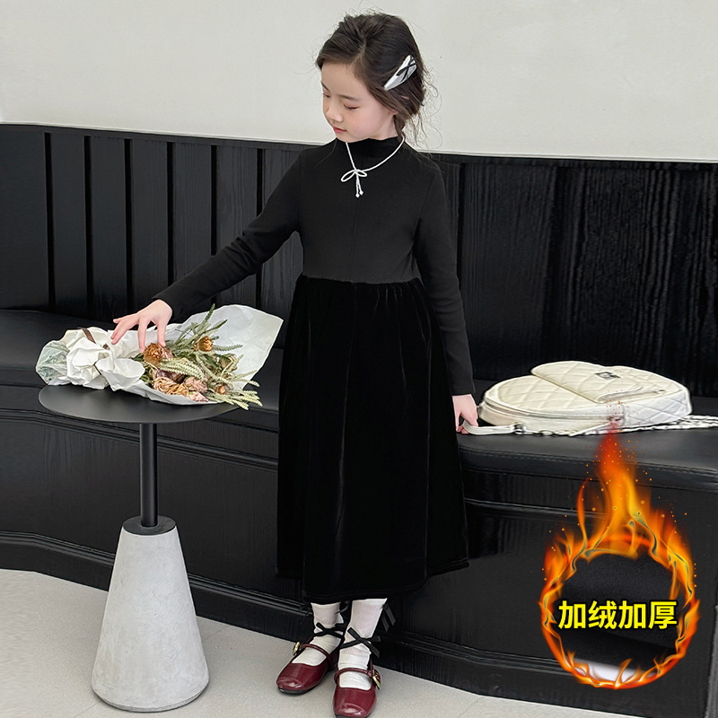 소녀 원피스 가을 겨울 2024 새로운 어린이 서양식 기모 벨벳 스커트 빅 키즈 소녀 블랙 프린세스 스커트스토어 가기