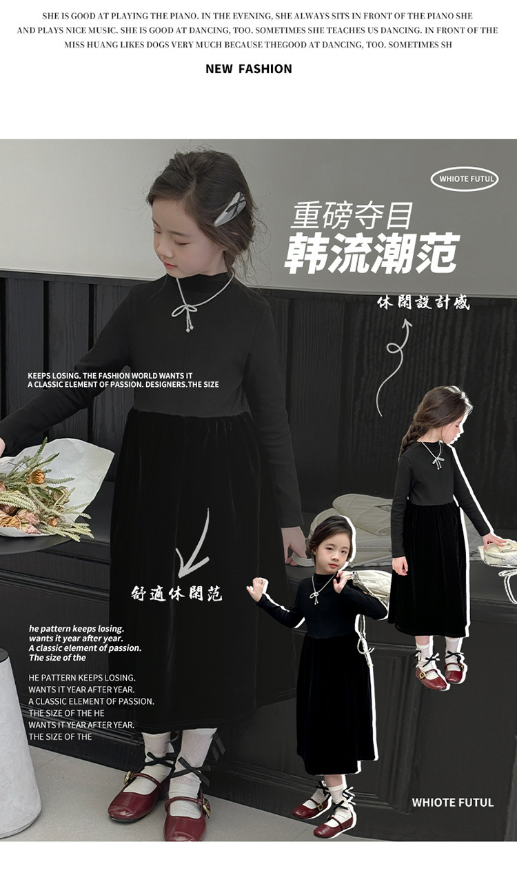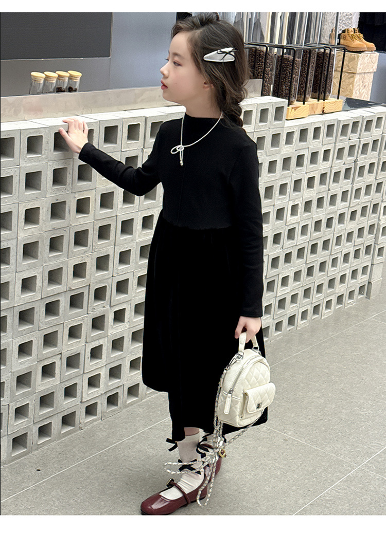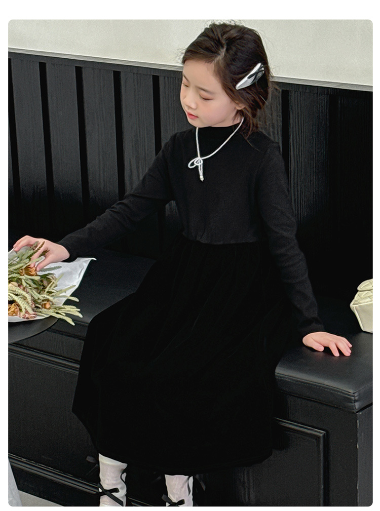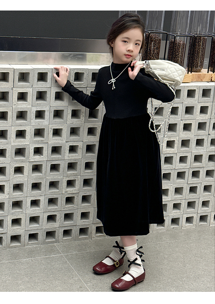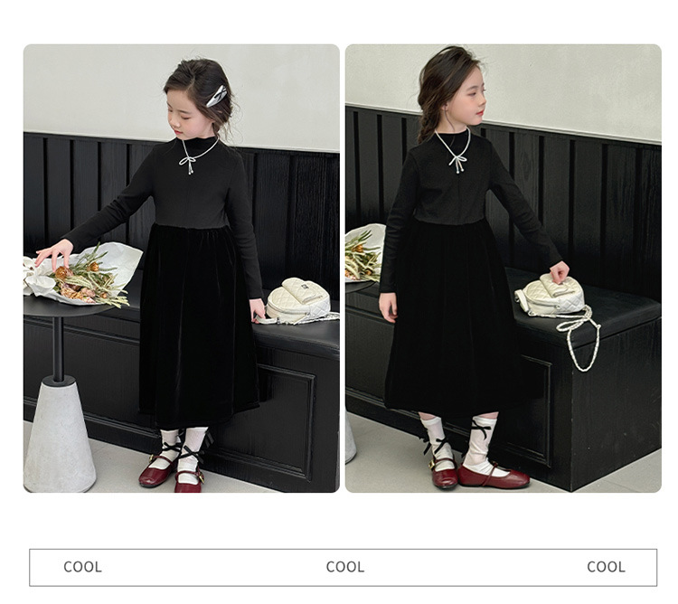 소녀 원피스 가을 겨울 2024 새로운 어린이 서양식 기모 벨벳 스커트 빅 키즈 소녀 블랙 프린세스 스커트스토어 가기