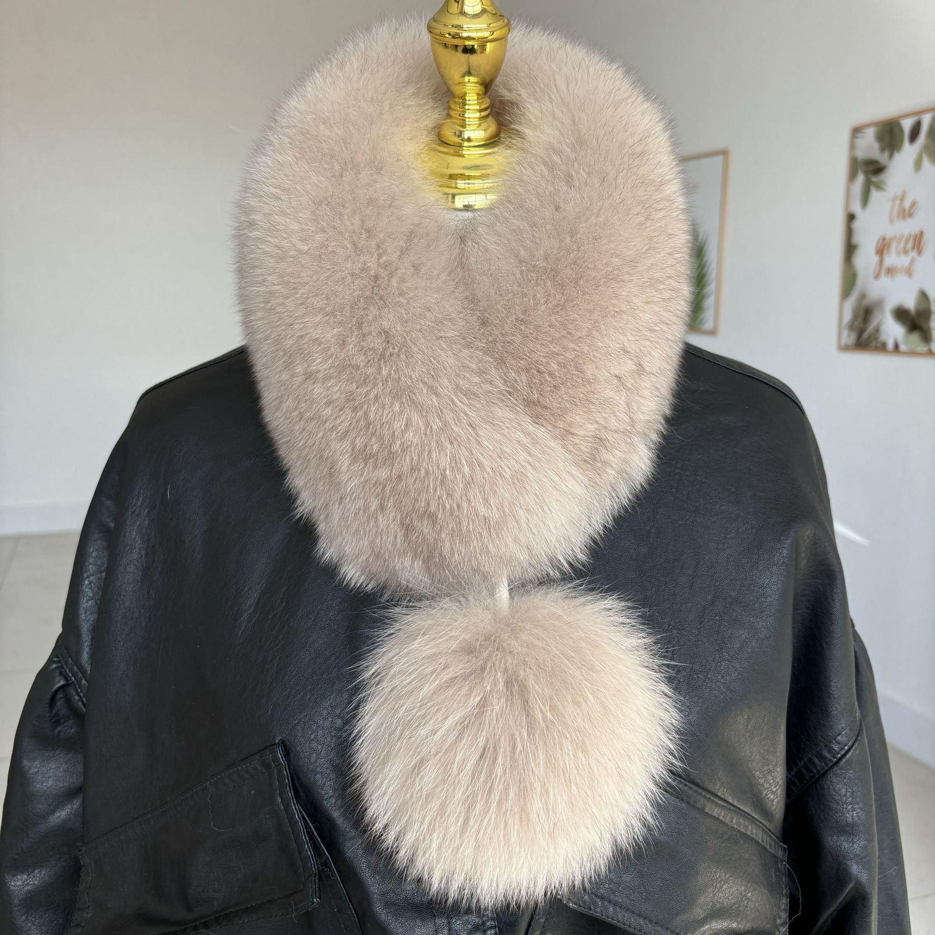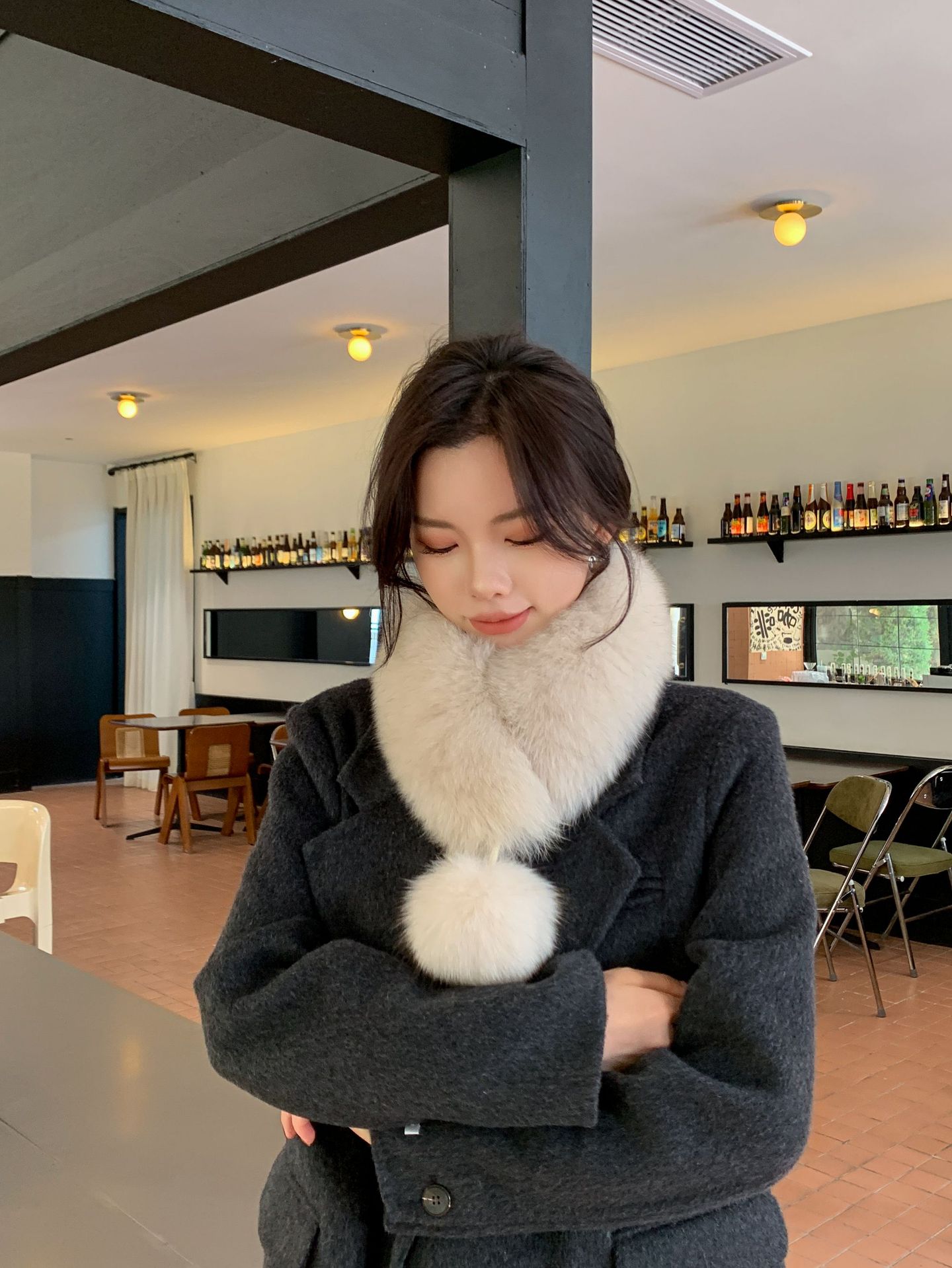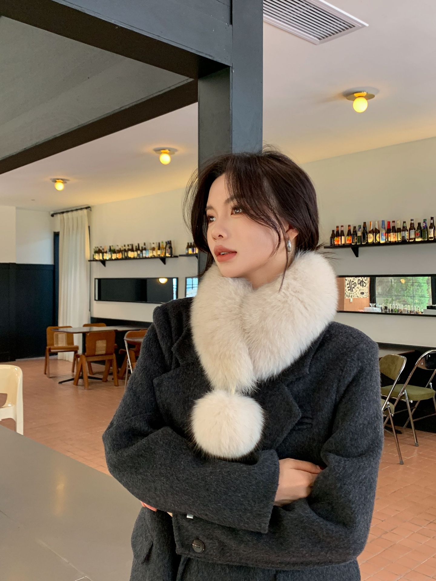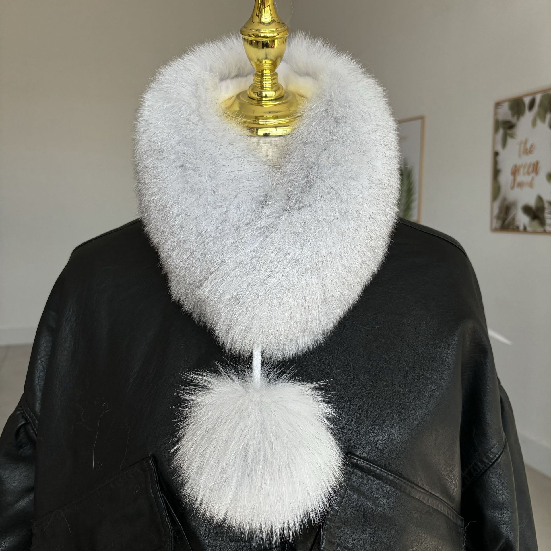 트루 폭스 모피 스카프 여자 겨울 따뜻한 한국 스타일 우아한 양면 모피 모피 공 스카프 울 칼라스토어 가기