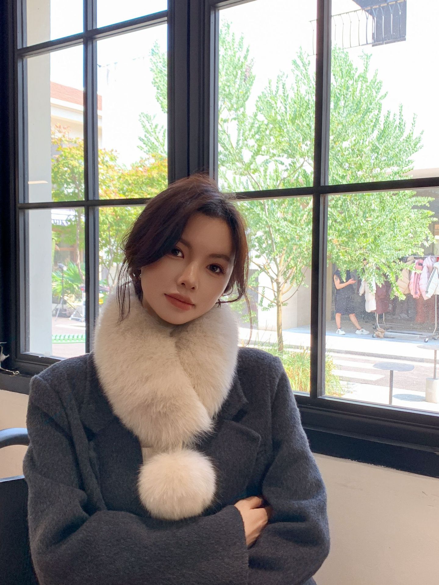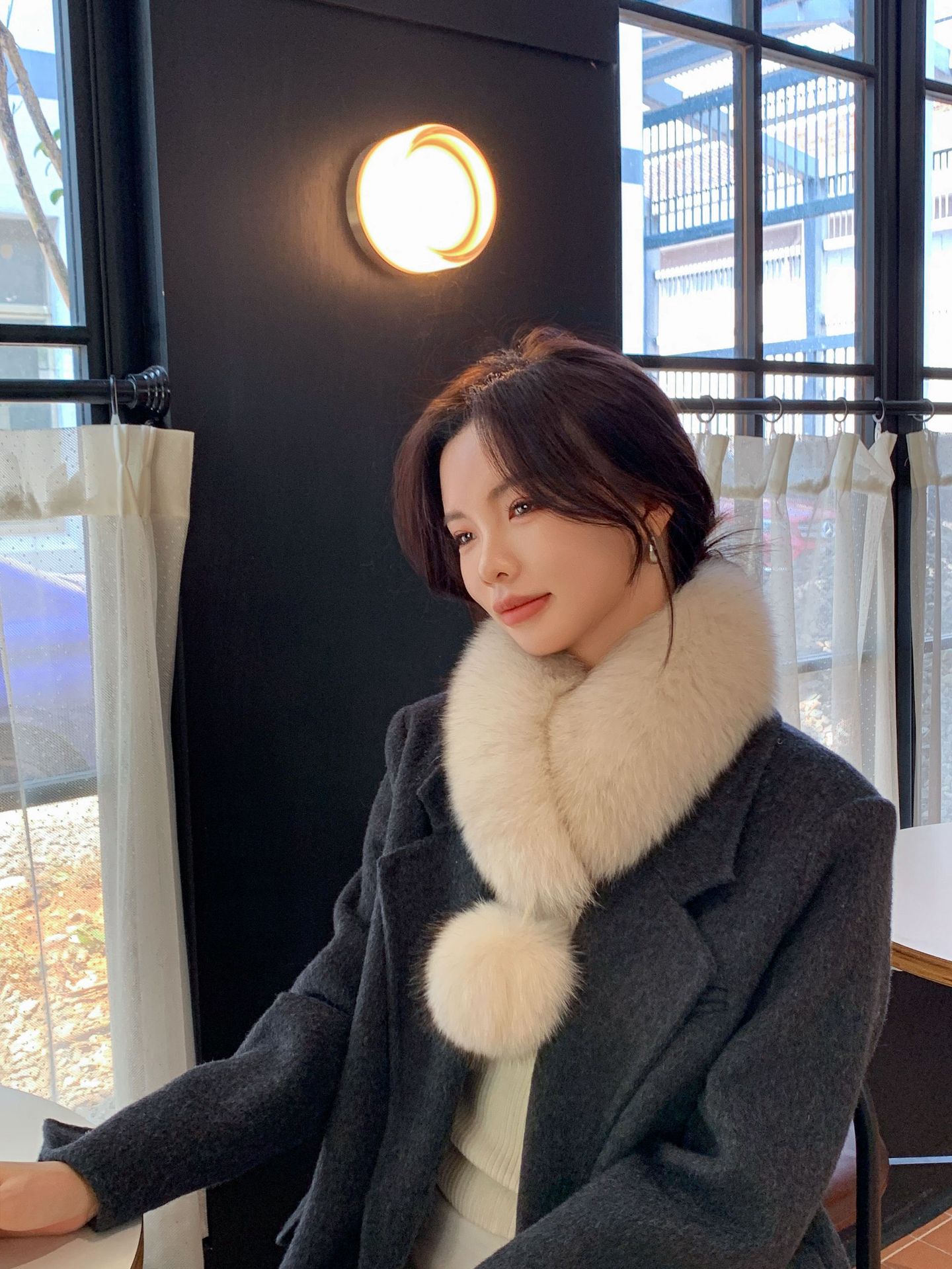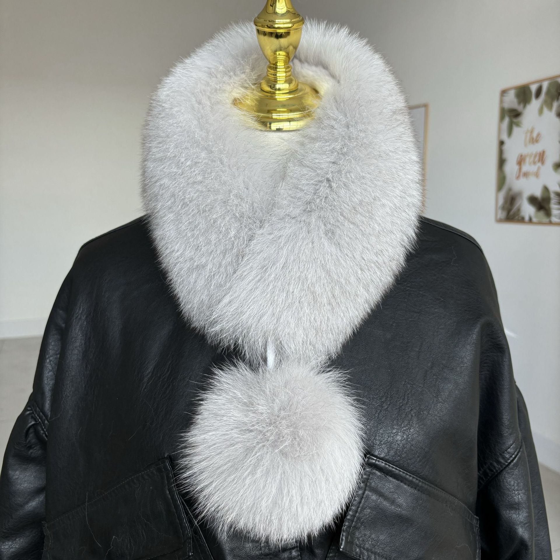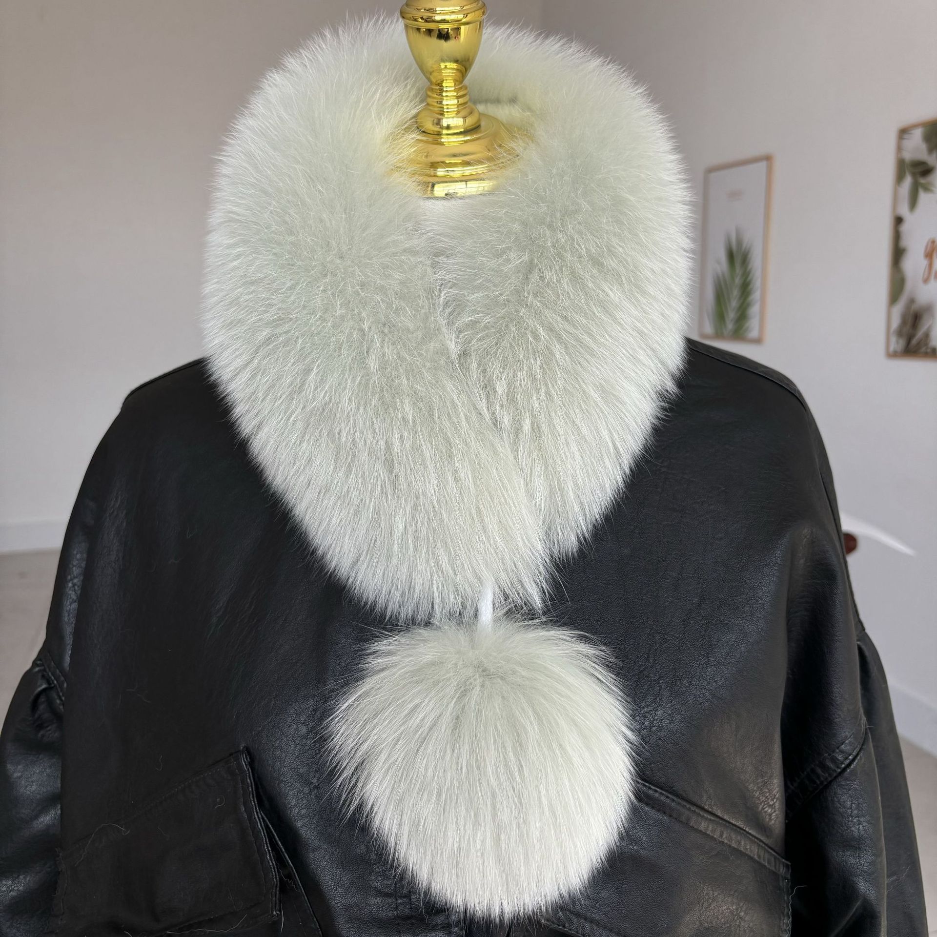 트루 폭스 모피 스카프 여자 겨울 따뜻한 한국 스타일 우아한 양면 모피 모피 공 스카프 울 칼라스토어 가기