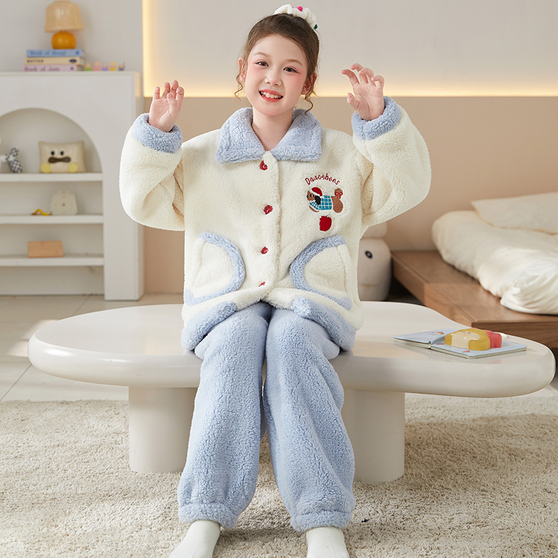 2024 년 새 소녀 잠옷 가을과 겨울 두꺼운 산호 양털 어린이와 소녀 큰 아이들 루비 집 옷 세트스토어 가기