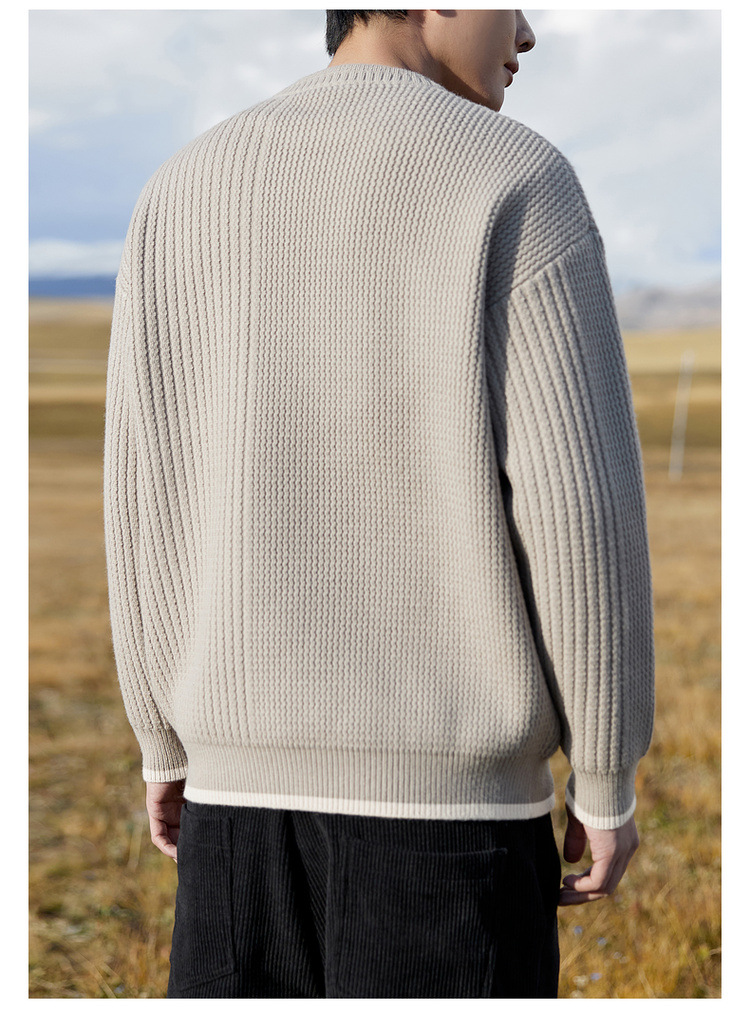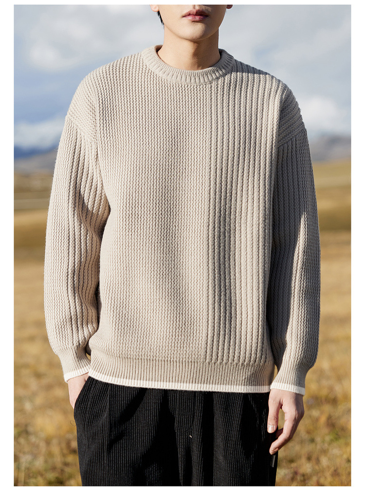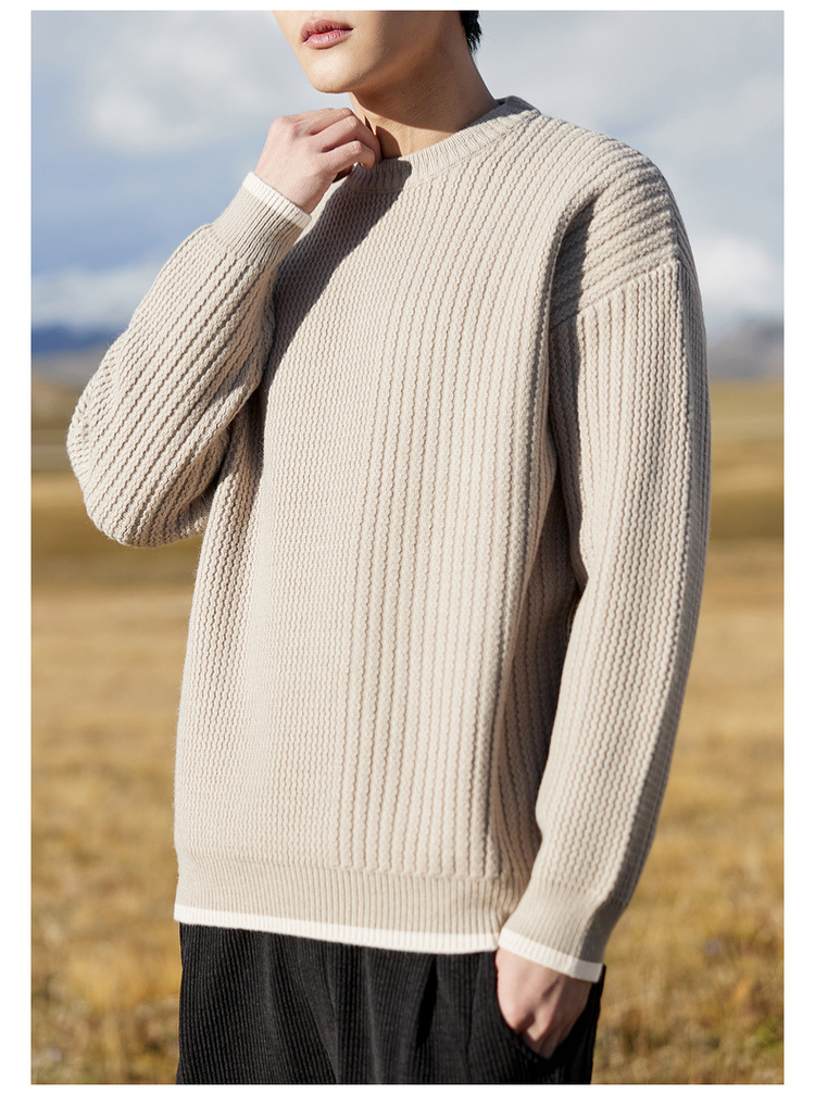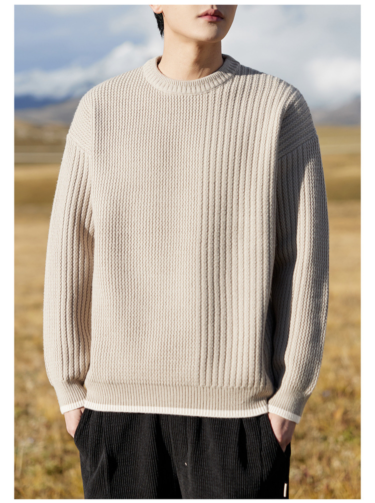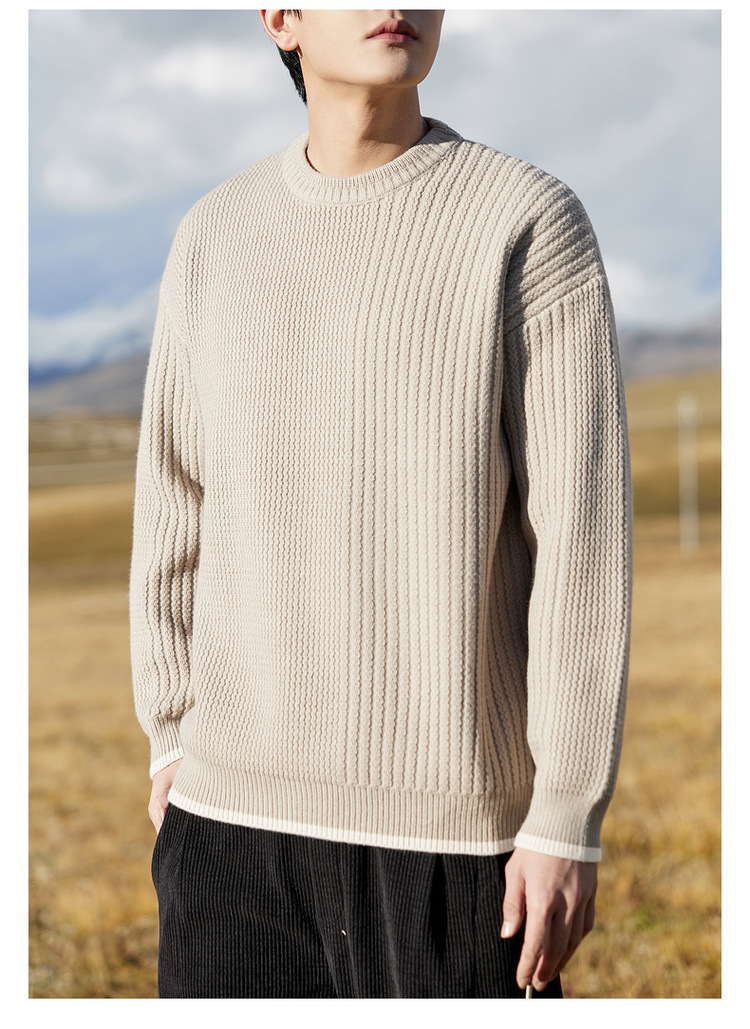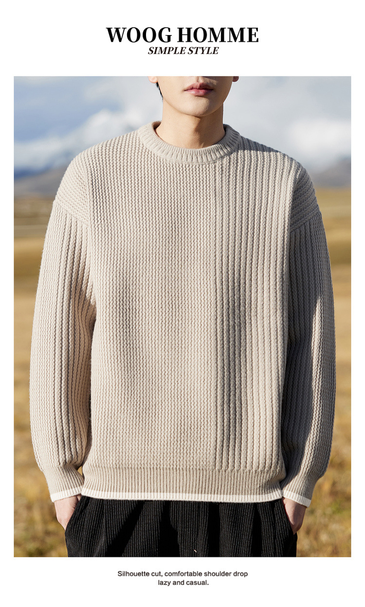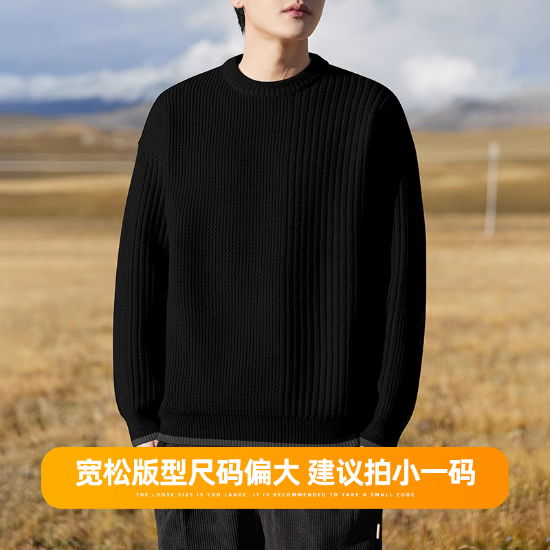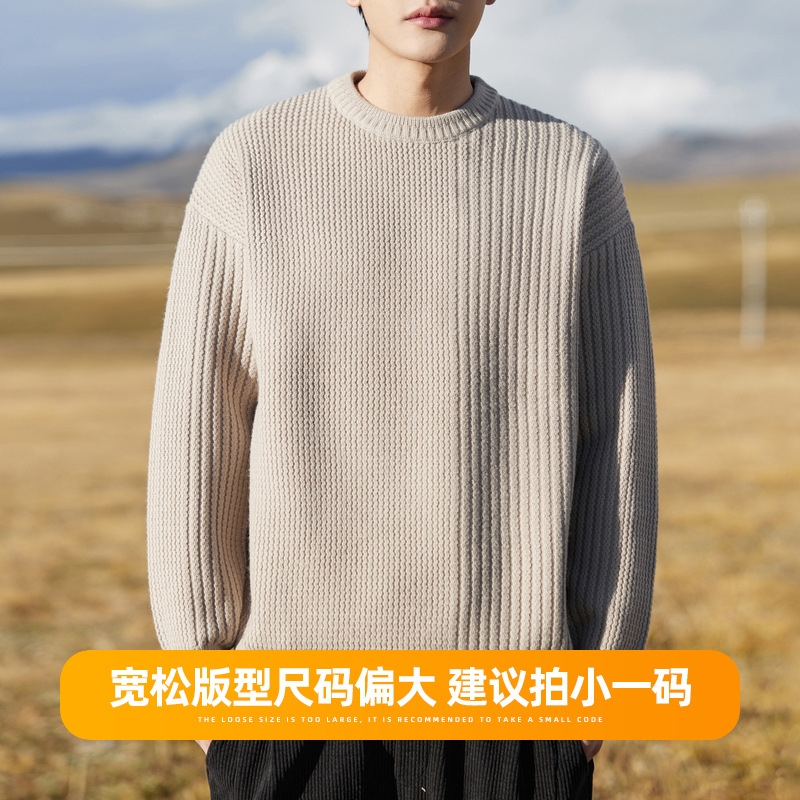 두꺼운 트위스트 패턴의 라운드넥 스웨터 남성용 2025 가을 겨울 신상 트렌디한 살짝 루즈한 핏의 따뜻한 긴팔 니트 스웨터스토어 가기
