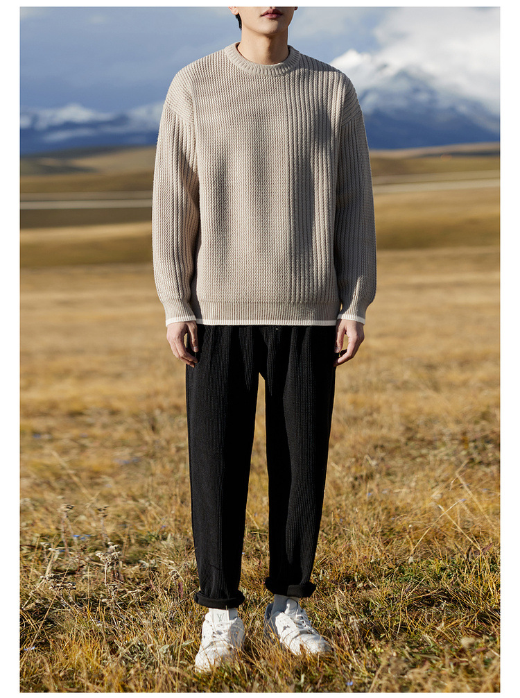 두꺼운 트위스트 패턴의 라운드넥 스웨터 남성용 2025 가을 겨울 신상 트렌디한 살짝 루즈한 핏의 따뜻한 긴팔 니트 스웨터
