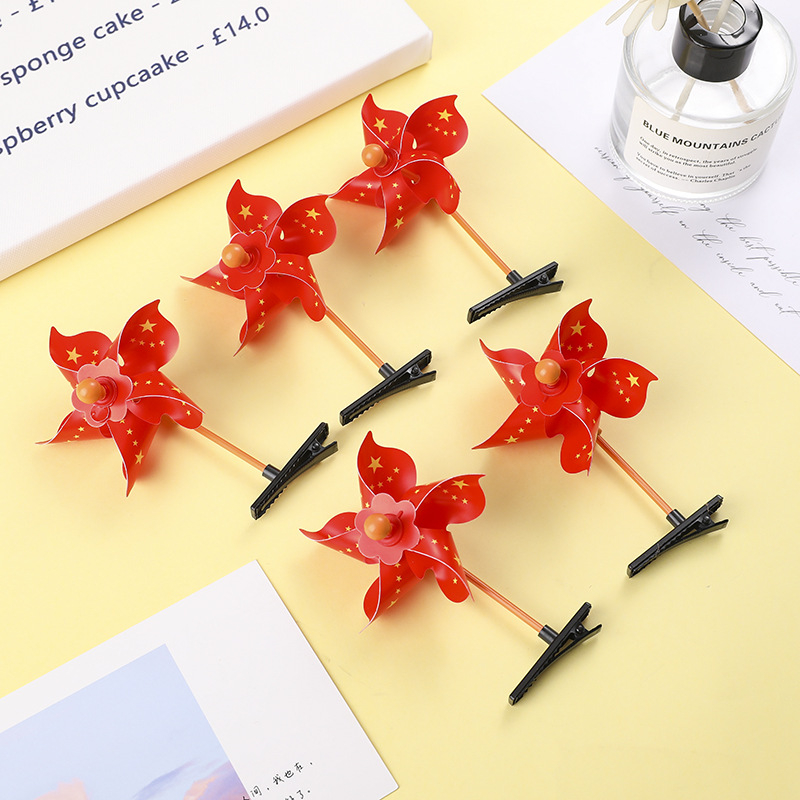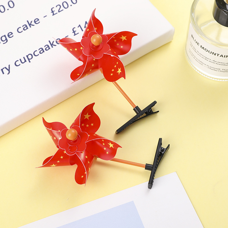 국경일 풍차 헤어핀 다섯개 별 헤어핀 풍차 클립 헤드웨어 판매 귀여운 아티팩트 헤어핀 푸시 작은 헤어핀
