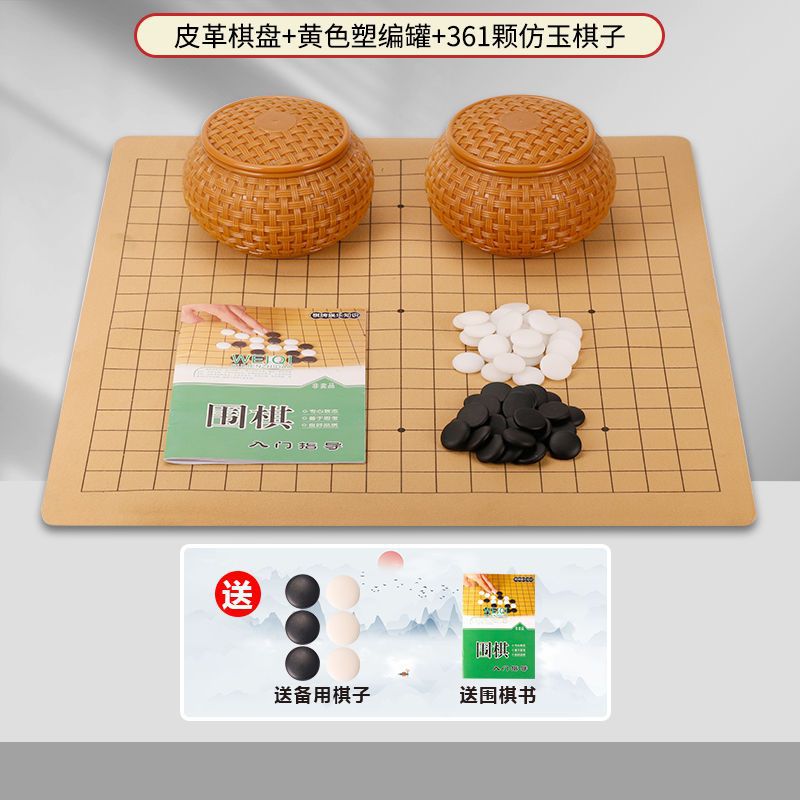 • 노란색 플라스틱 직조 361 그레인 모조 옥 + 가죽 체스판✦