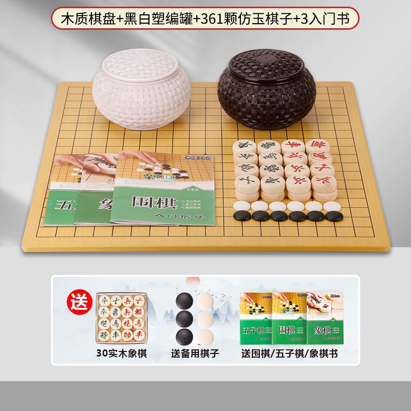 • 흑백 플라스틱 땋은 361개 모조옥 + 나무판 + 체스 무료 패키지✦