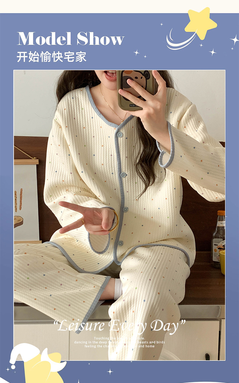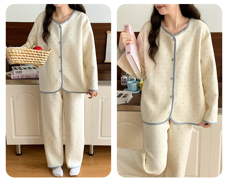 에어 코튼 파자마 여성의 가을과 겨울 긴 소매 샌드위치 두꺼운 2024 새로운 폴카 도트 코튼 홈 의류 세트스토어 가기