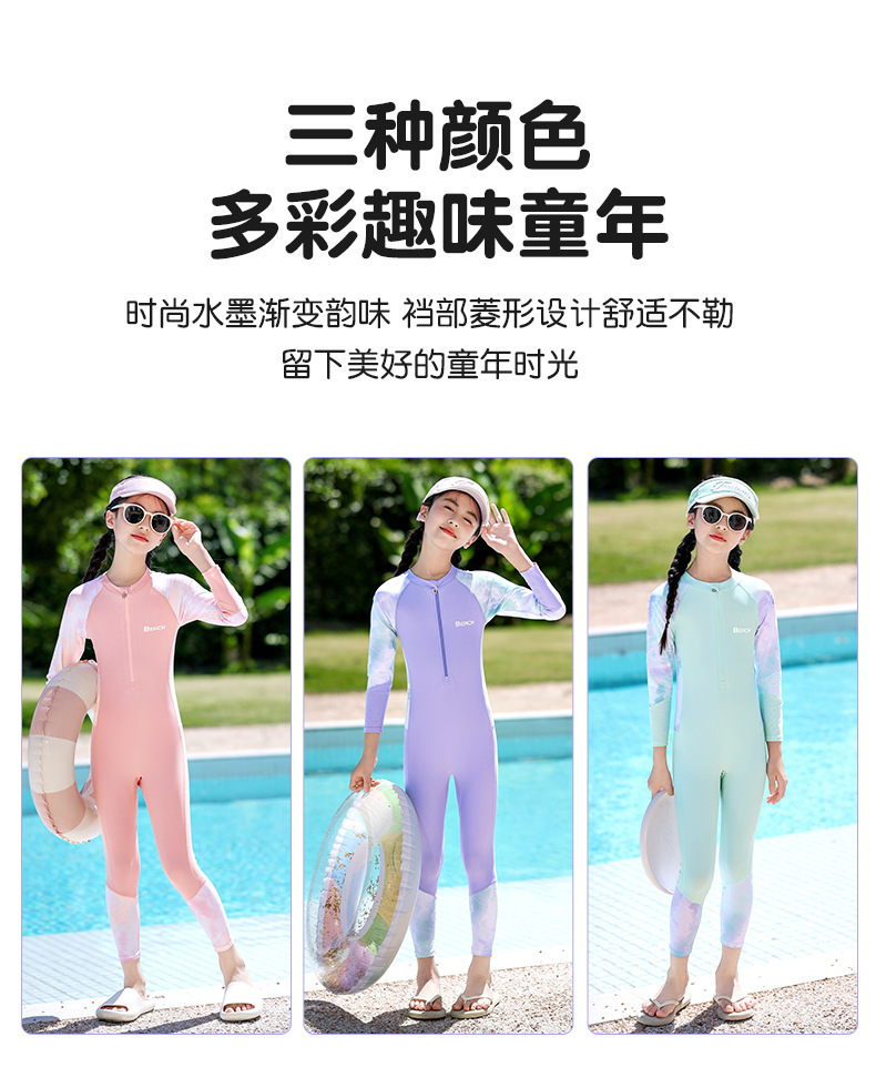 어린이 수영복 소녀 2024 새로운 도착 긴 소매 바지 뜨거운 봄 수영복 전문 교육스토어 가기