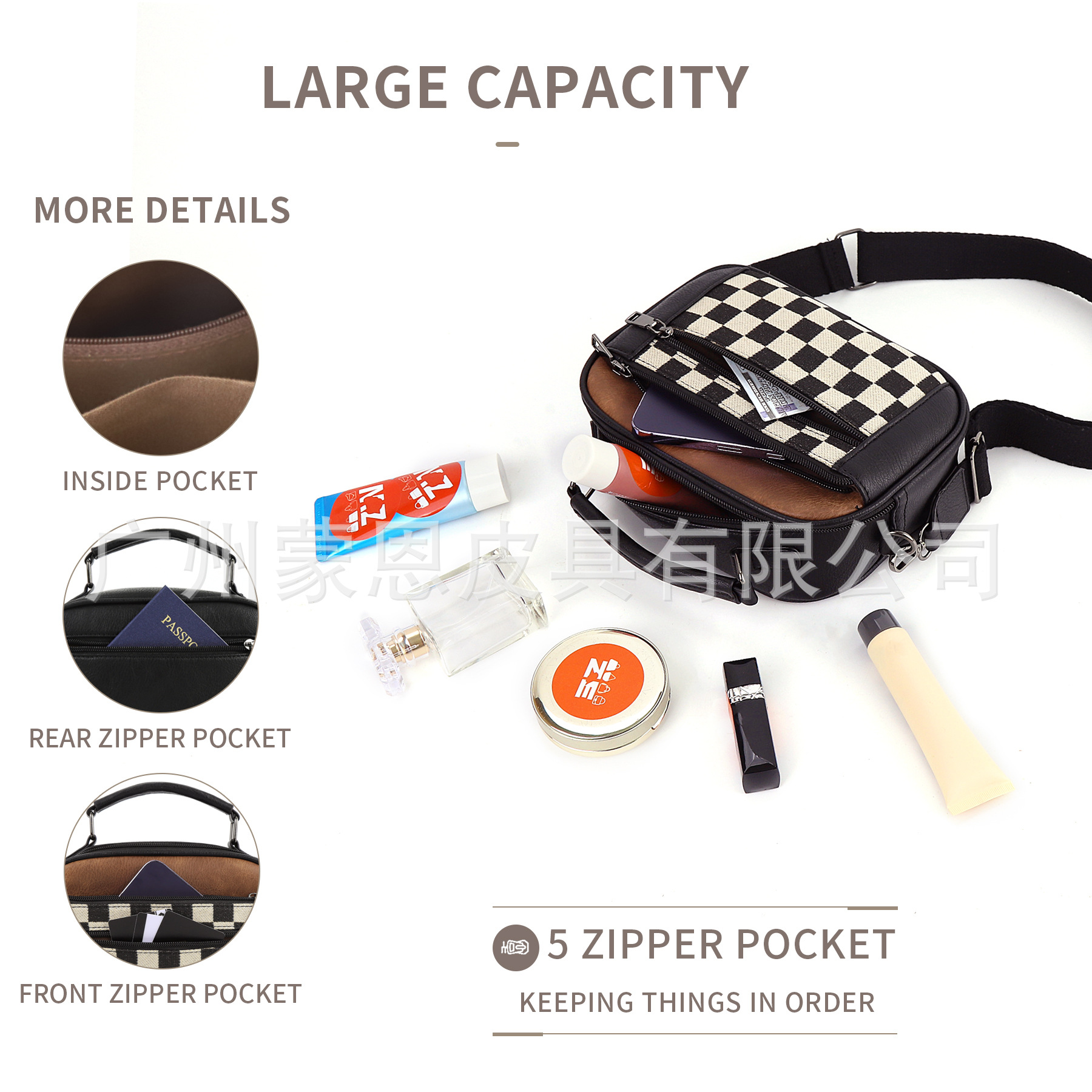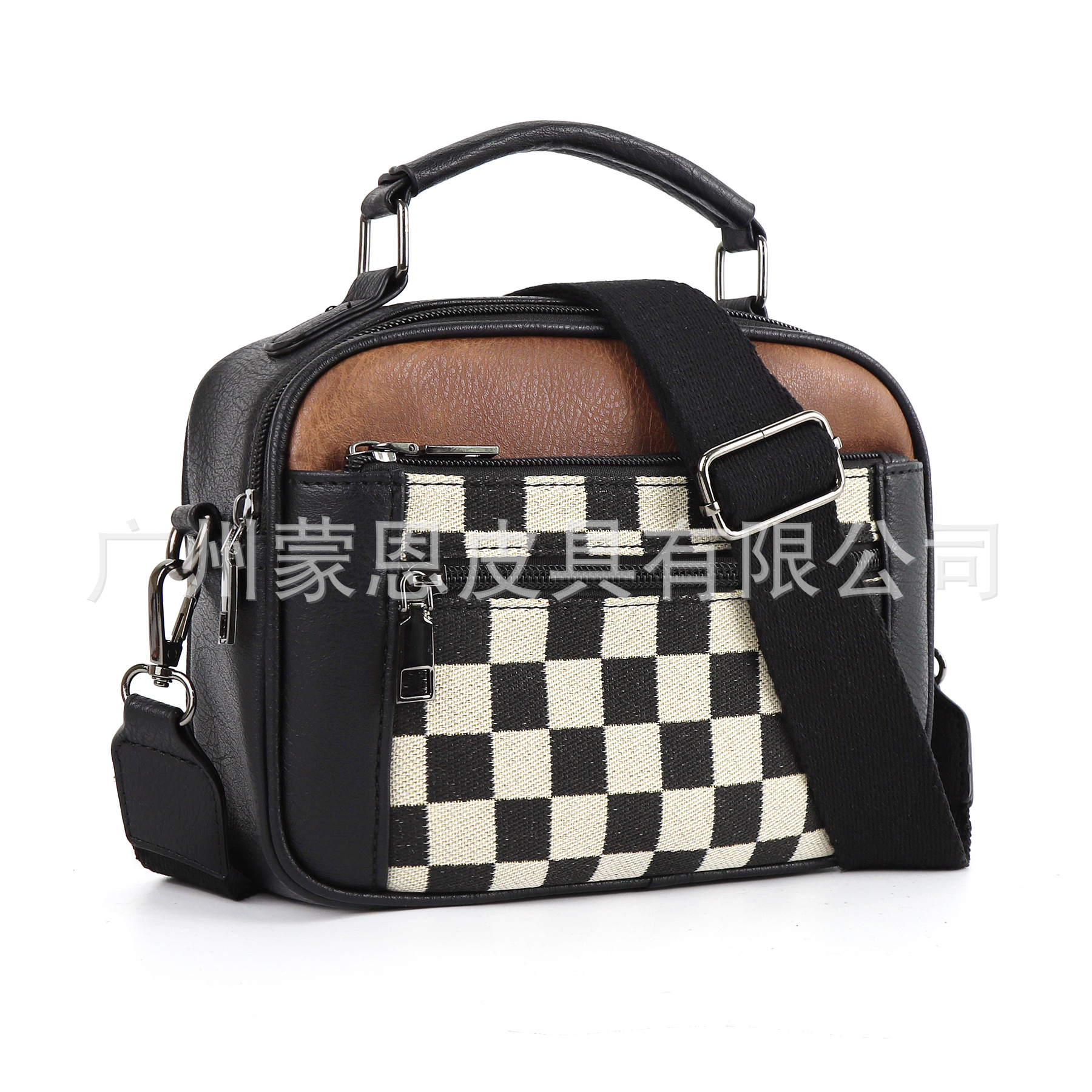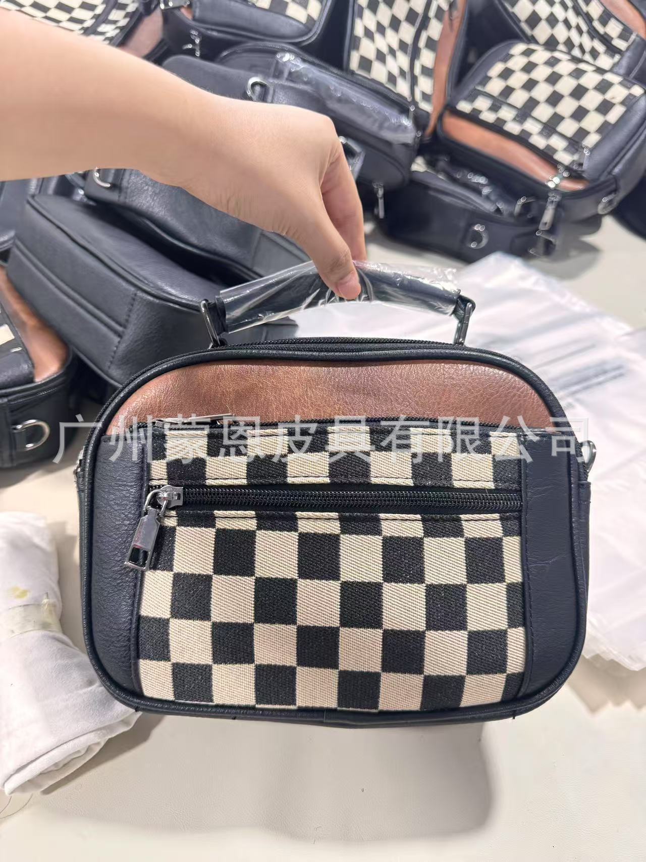 아마존 국경 간 뜨거운 판매 캔버스 체커 보드 더블 지퍼 핸들 패션 크로스 바디 어깨 PU 스퀘어 백