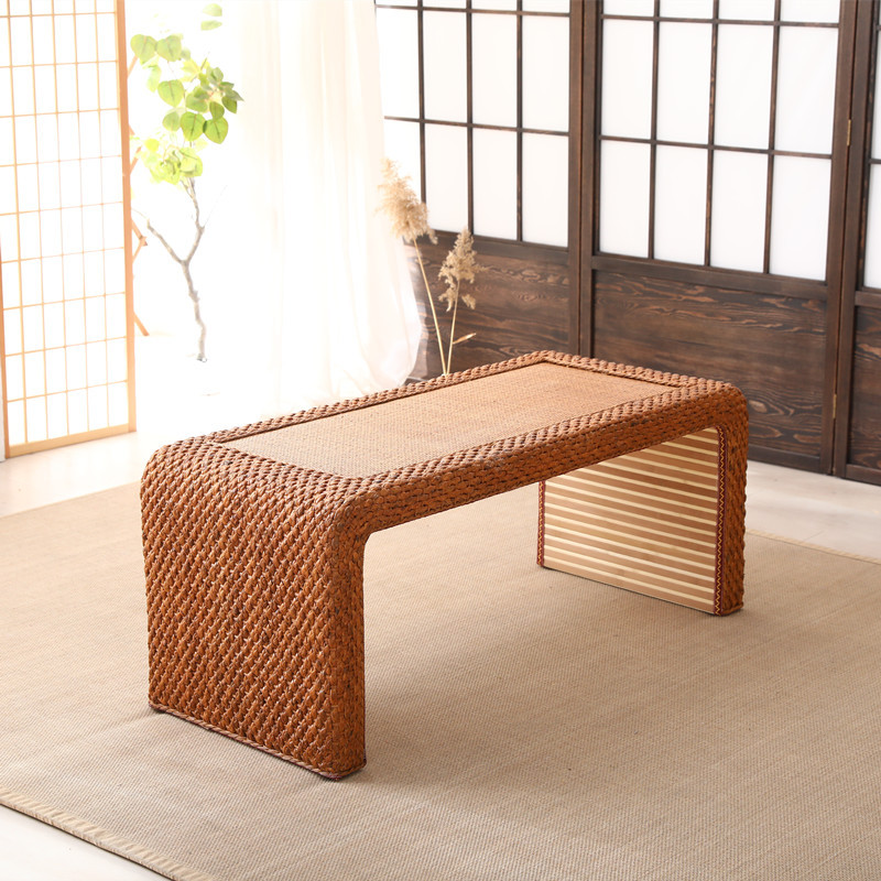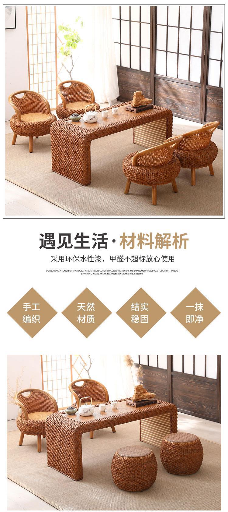 등나무 다다미 차 테이블 발코니 작은 테이블 일본 커피 테이블 야외 안뜰 테이블과 의자 조합 3 피스 낮은 차 테이블스토어 가기