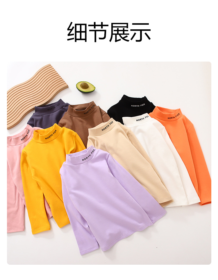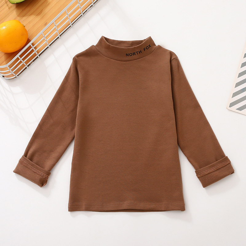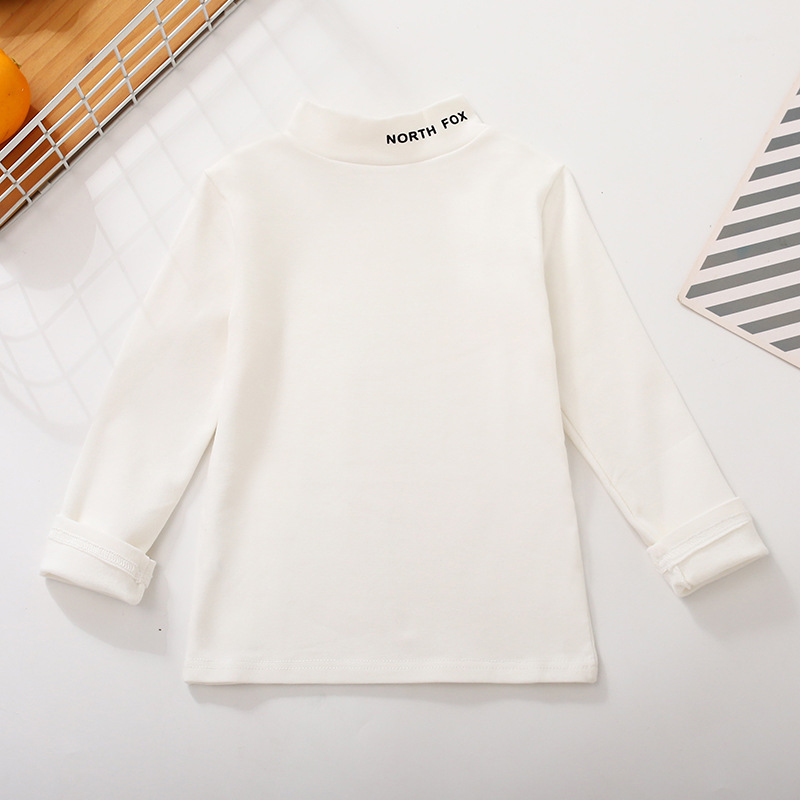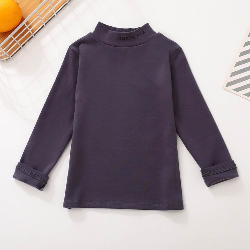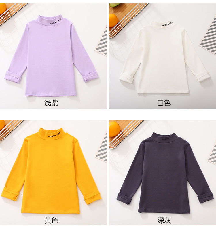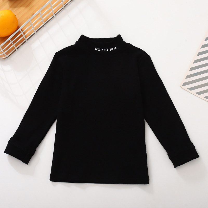반 높이 칼라 어린이 블랙베이스 셔츠 소녀의 봄, 가을, 겨울 소년의 아기를위한 순수한 면 내부 긴팔 티셔츠 탑