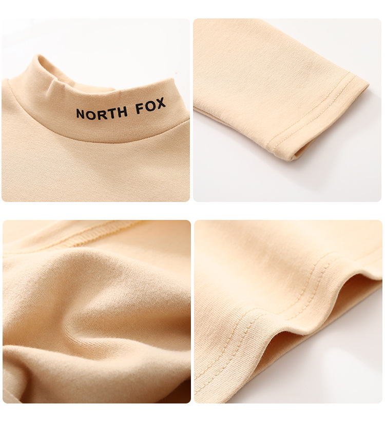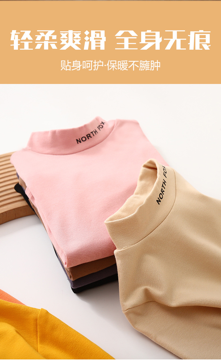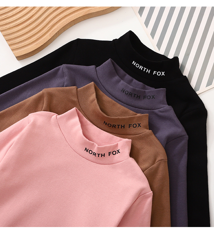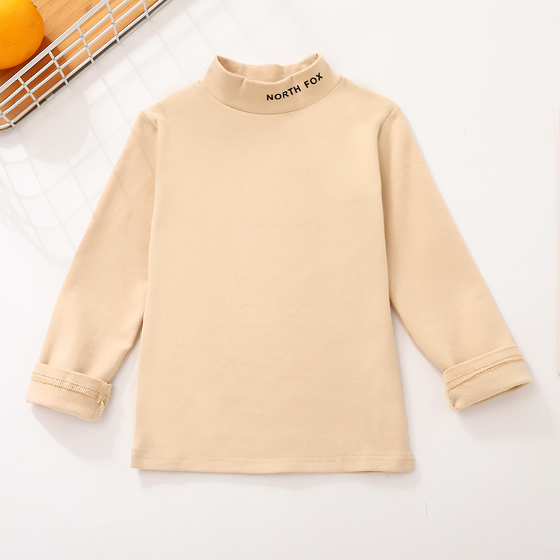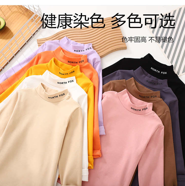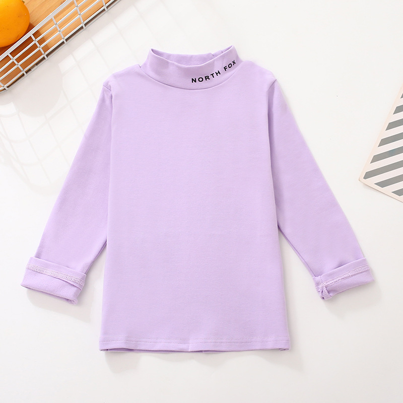 반 높이 칼라 어린이 블랙베이스 셔츠 소녀의 봄, 가을, 겨울 소년의 아기를위한 순수한 면 내부 긴팔 티셔츠 탑