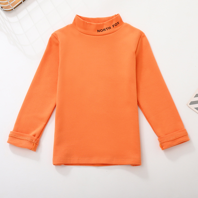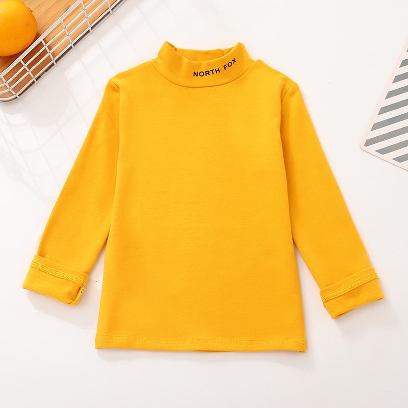 반 높이 칼라 어린이 블랙베이스 셔츠 소녀의 봄, 가을, 겨울 소년의 아기를위한 순수한 면 내부 긴팔 티셔츠 탑스토어 가기