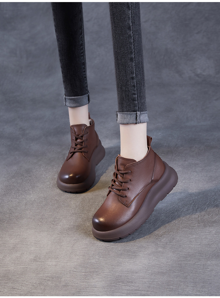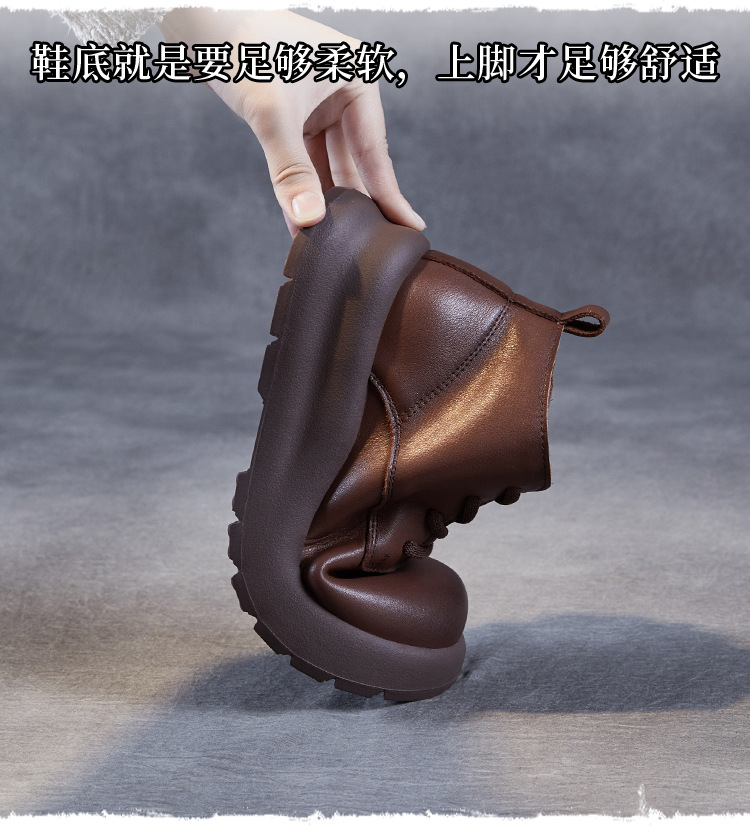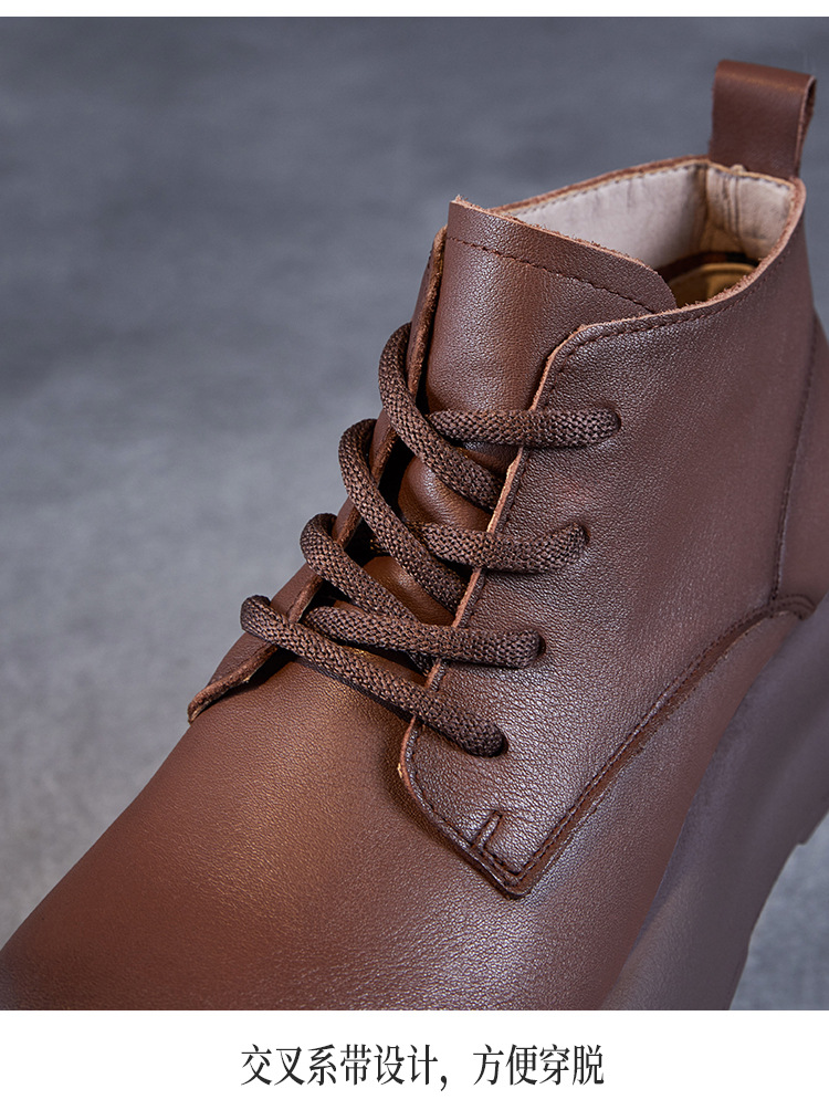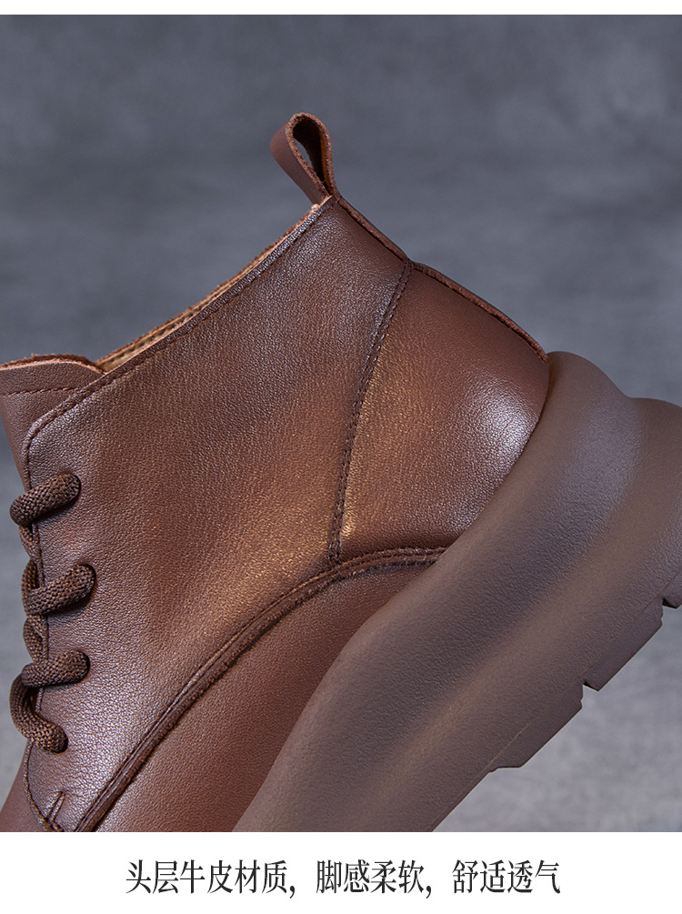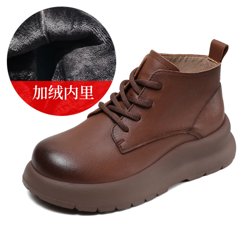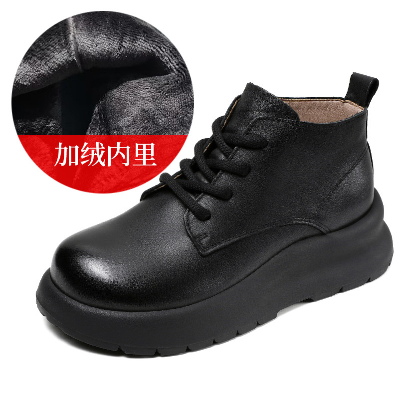 가을과 겨울 2024 정품 가죽 영어 스타일 마틴 여성 플랫 발목 부츠 두꺼운 바닥 빈티지 플러스 사이즈 레이스 업 기모 부츠
