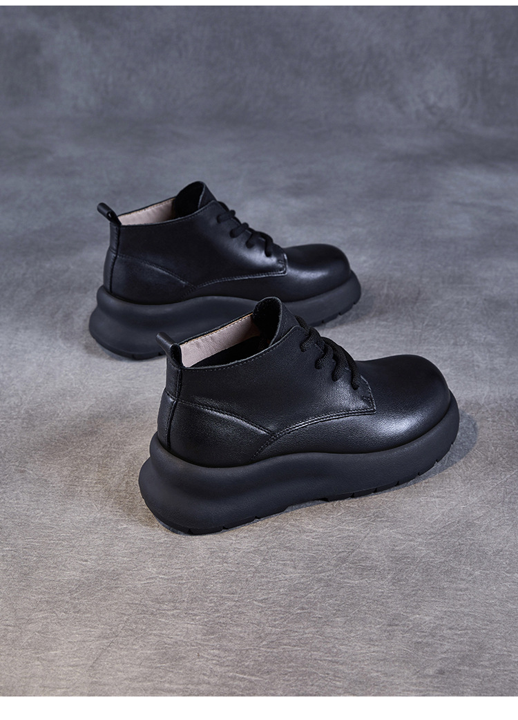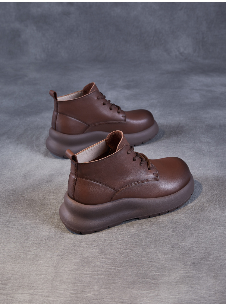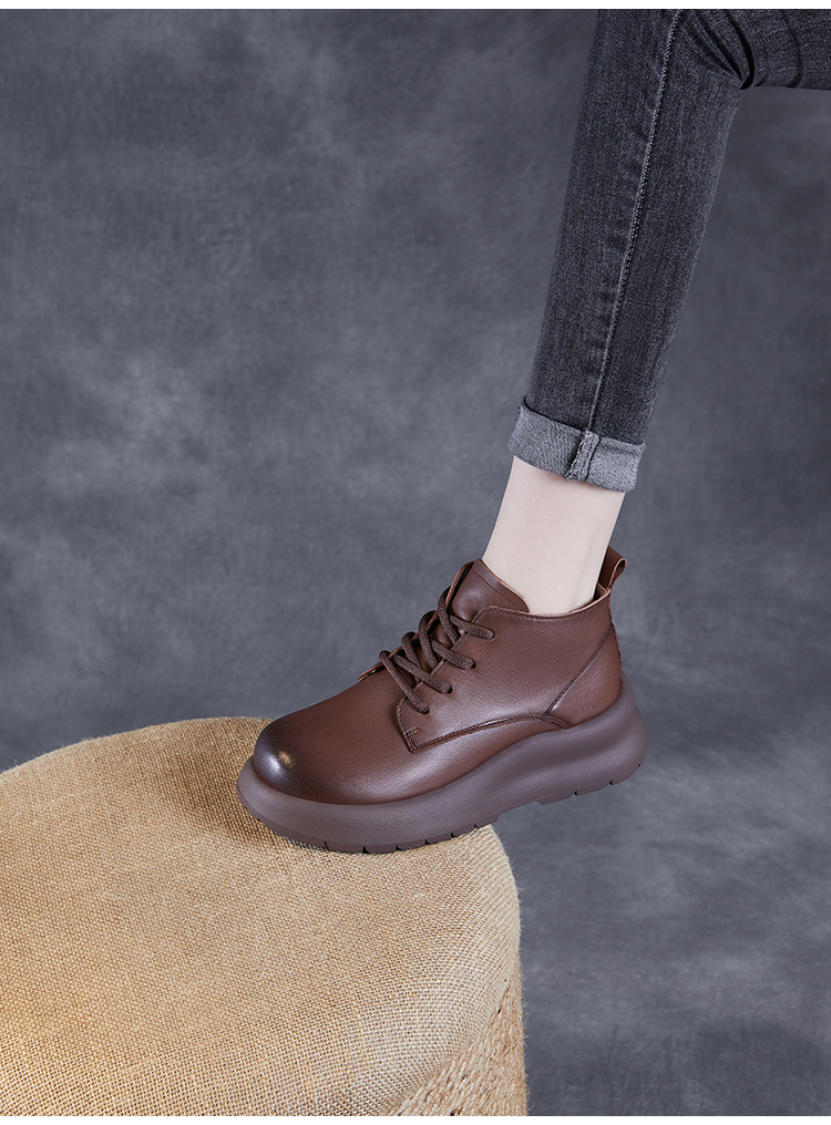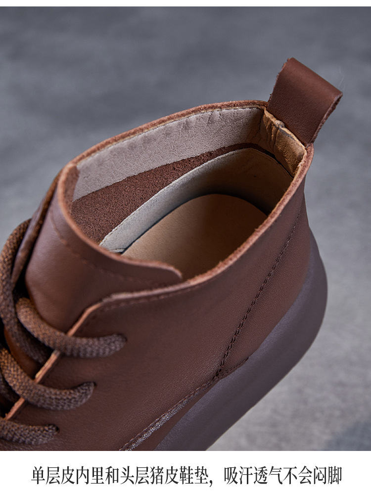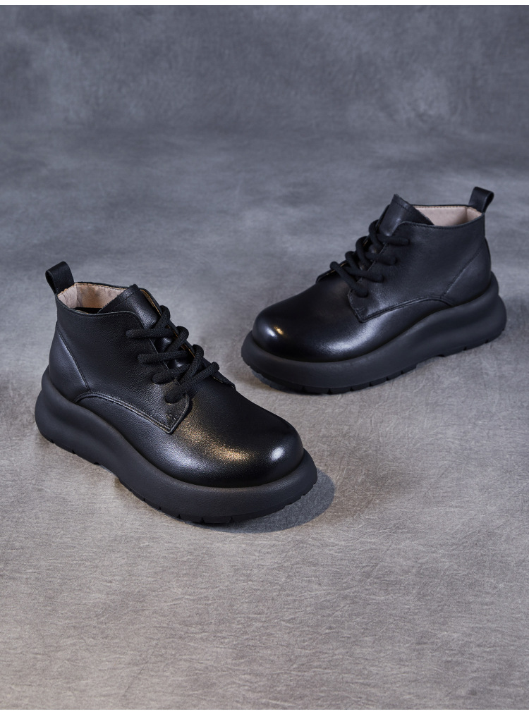 가을과 겨울 2024 정품 가죽 영어 스타일 마틴 여성 플랫 발목 부츠 두꺼운 바닥 빈티지 플러스 사이즈 레이스 업 기모 부츠