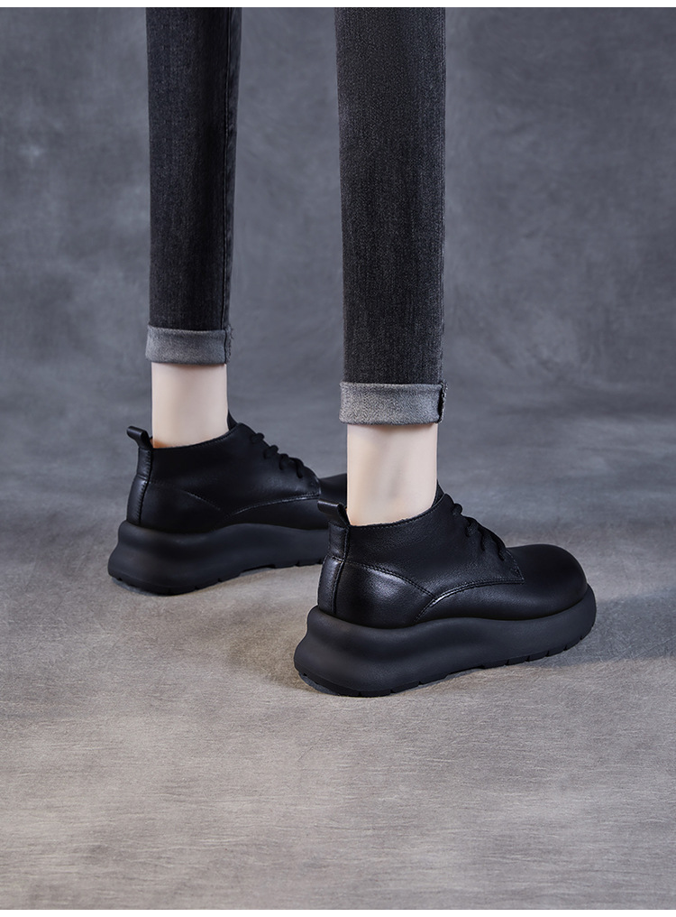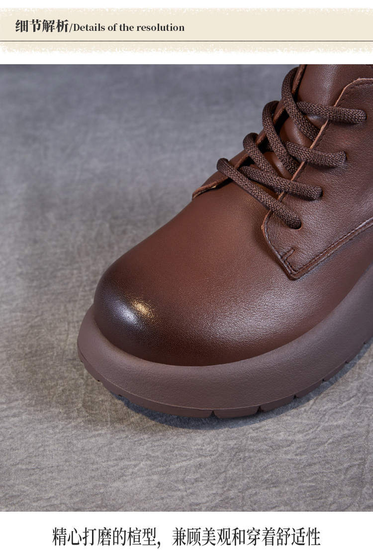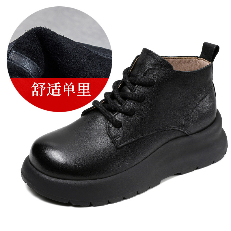 가을과 겨울 2024 정품 가죽 영어 스타일 마틴 여성 플랫 발목 부츠 두꺼운 바닥 빈티지 플러스 사이즈 레이스 업 기모 부츠스토어 가기