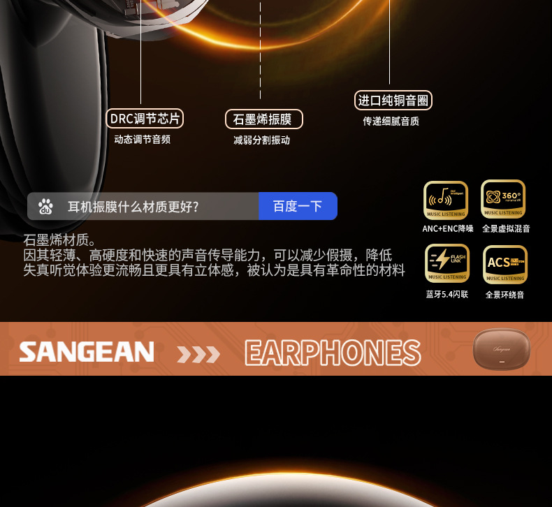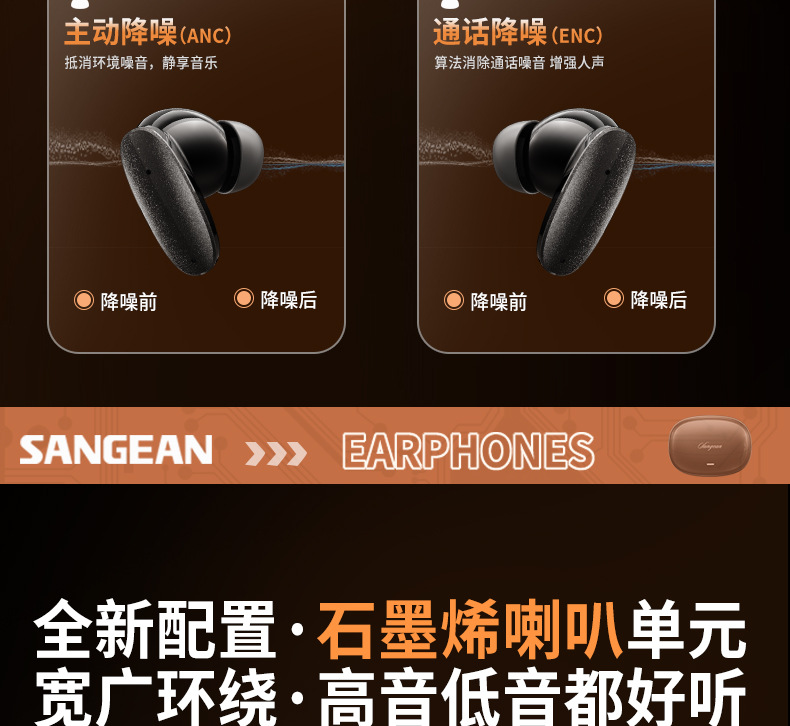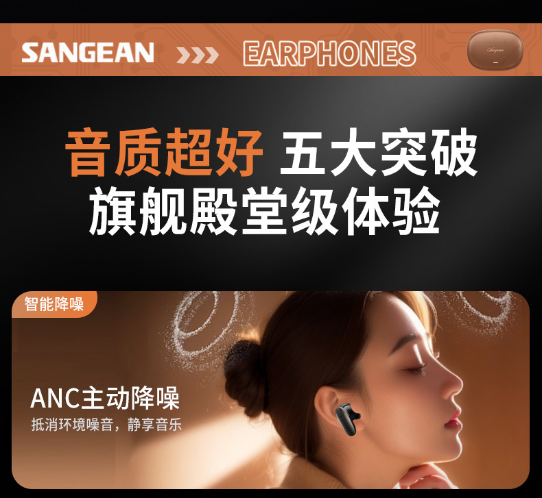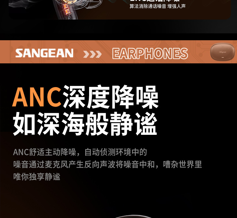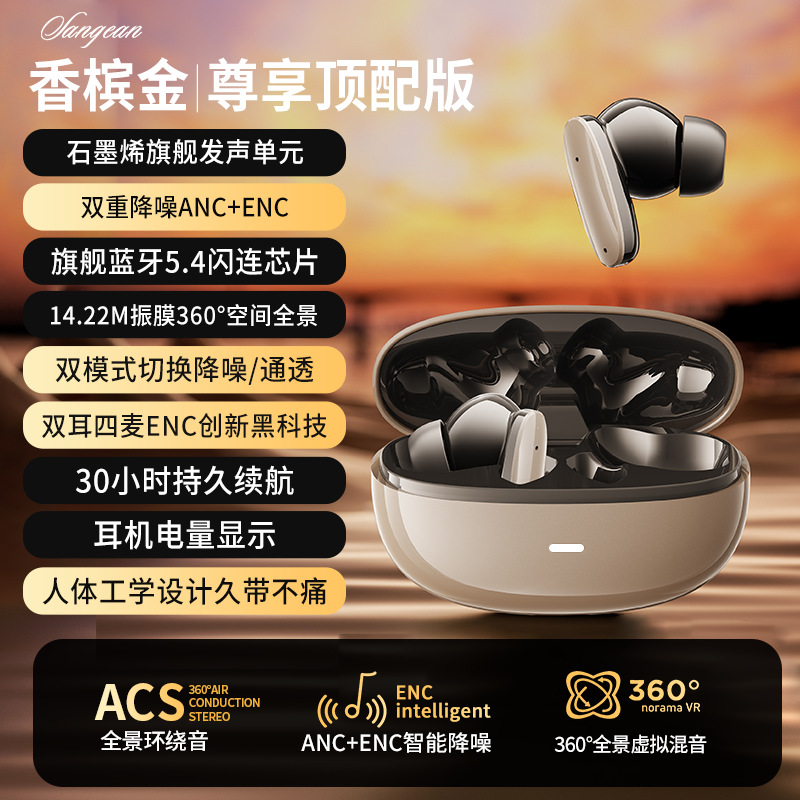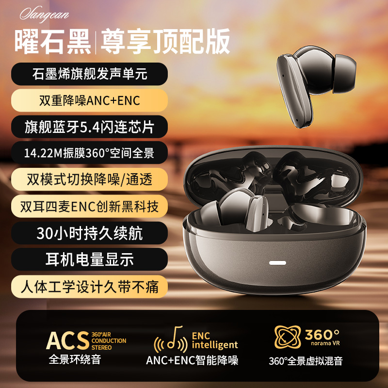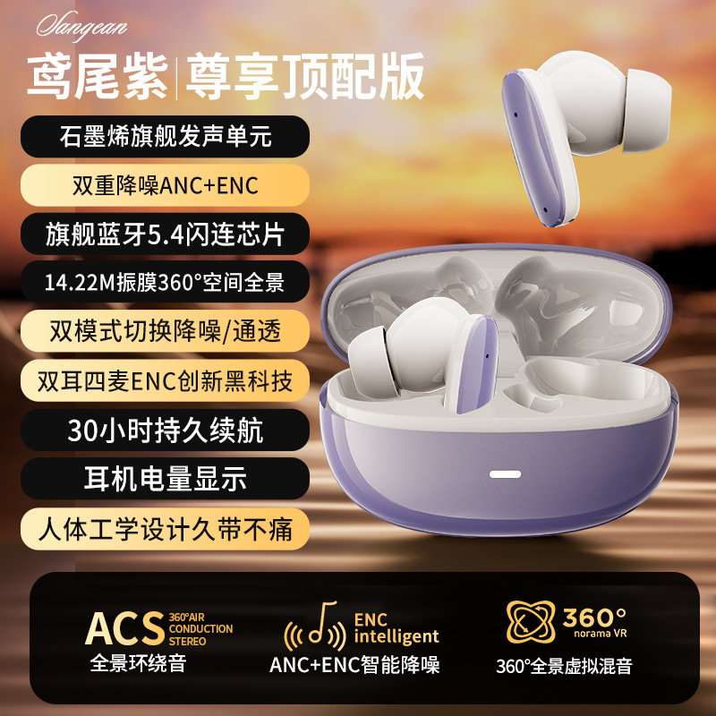 산진 ANC 능동 소음 감소 블루투스 이어폰 인이어형 ENC 통화 소음 감소 고음질 초장시간 배터리 수명 저지연