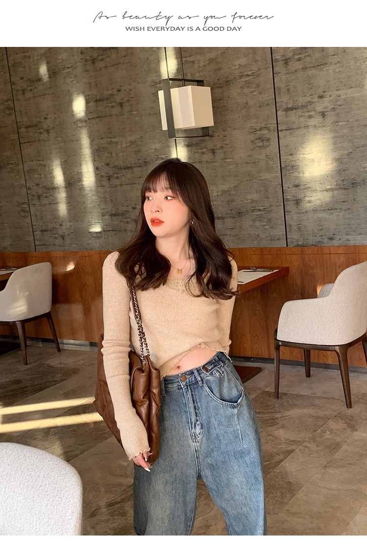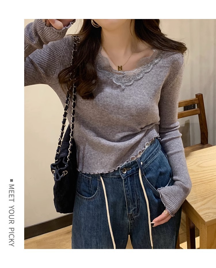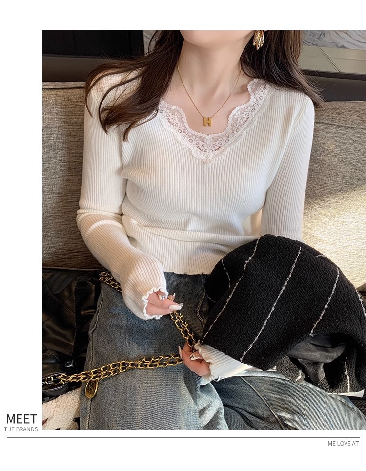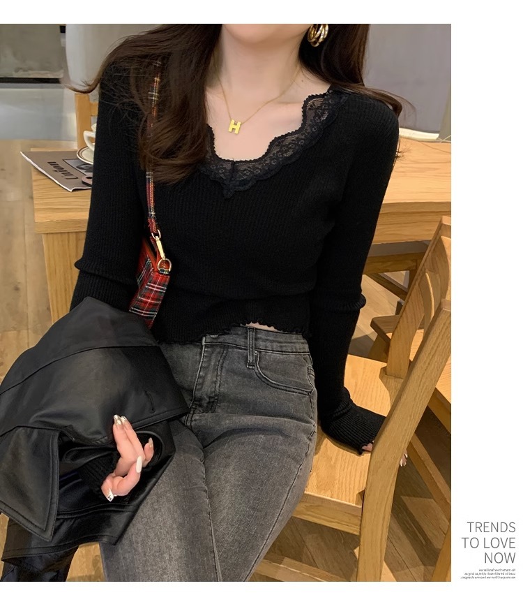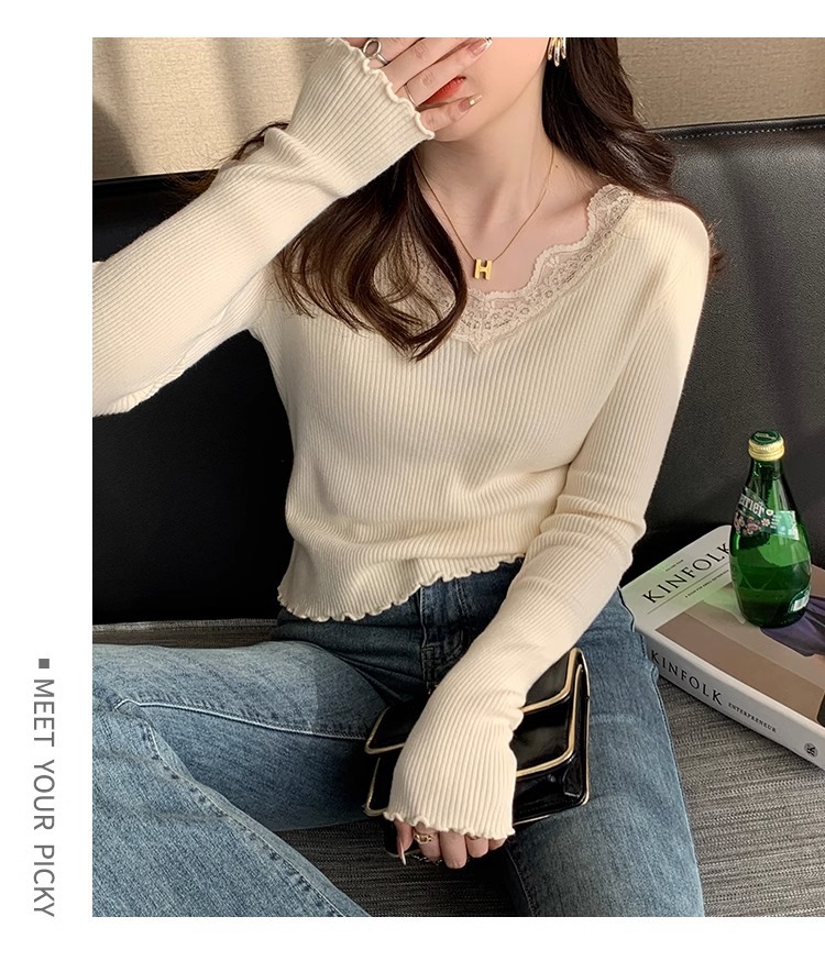 레이스베이스 니트 여성 2024 새로운 스타일 외국 스타일 내부 나무 가장자리 스웨터 낮은 목 디자인 틈새스토어 가기