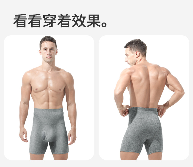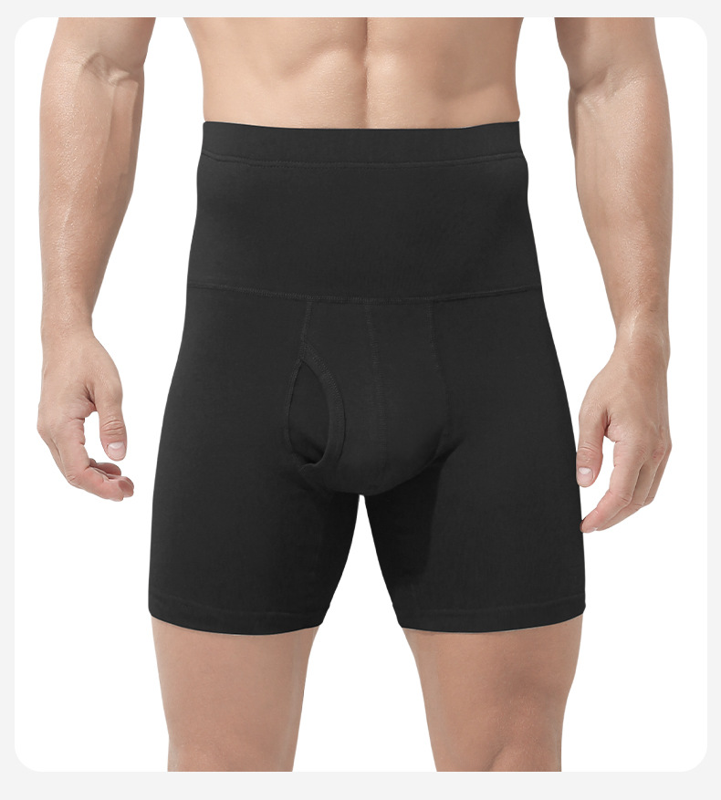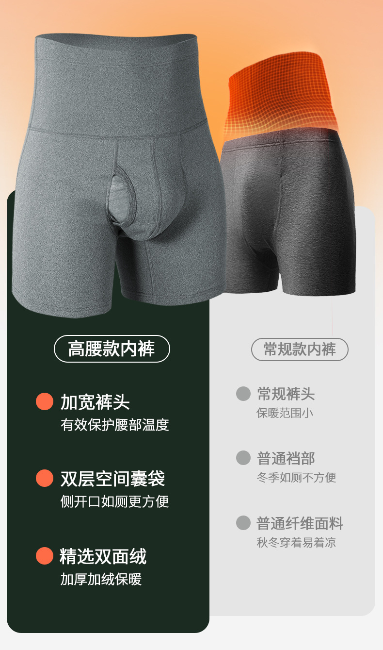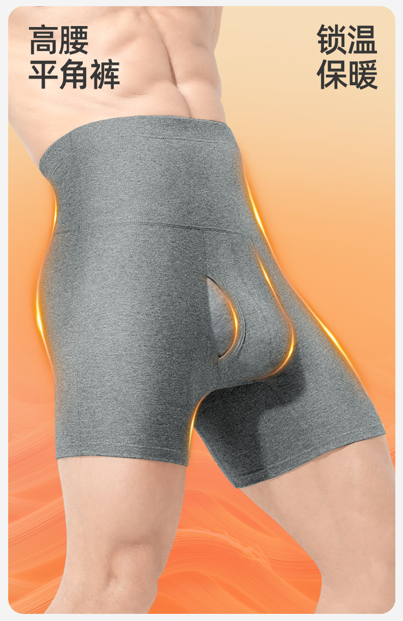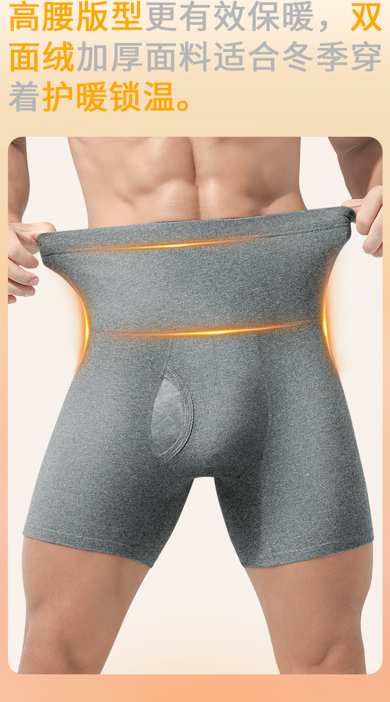 남성용 속옷 높은 허리 복부 틴드 초대형 마모 방지 다리 허리 보호 따뜻한 기모 두꺼운 스포츠 복서 반바지