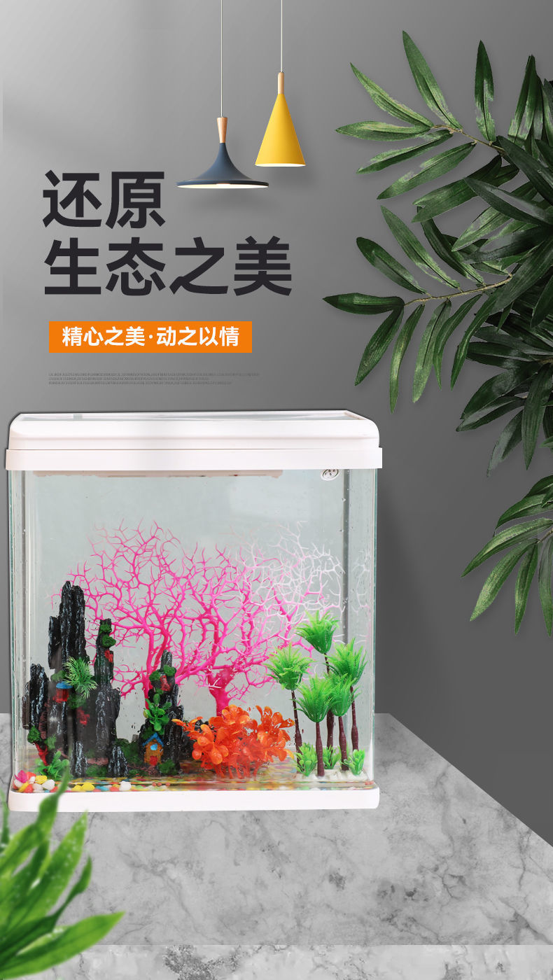 가정용 거실 투명한 뜨거운 곡선 산소 펌프 물 교환 게으른 중소 부유물 풍경 유리 물고기 탱크 물 Jiatai스토어 가기