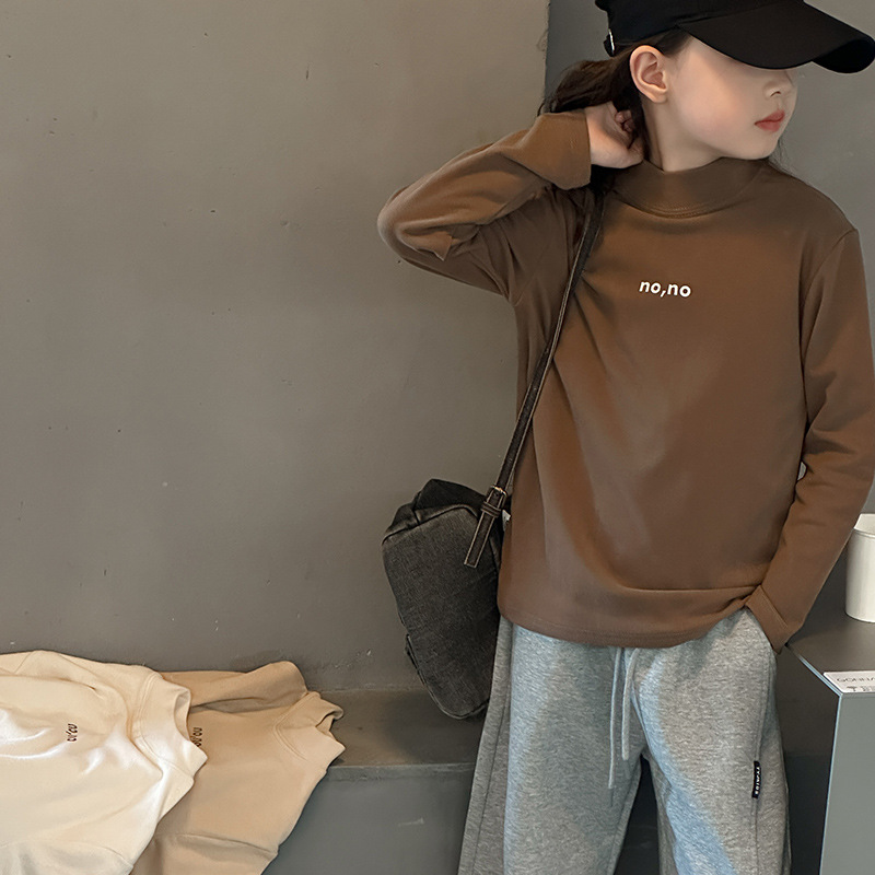 여자 벨벳베이스 셔츠 봄과 가을 2024 새로운 어린이 열 속옷 한국식 소녀 가을 긴팔 티셔츠스토어 가기