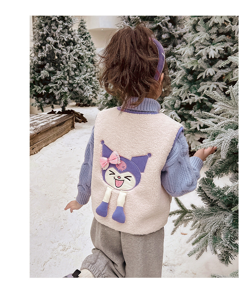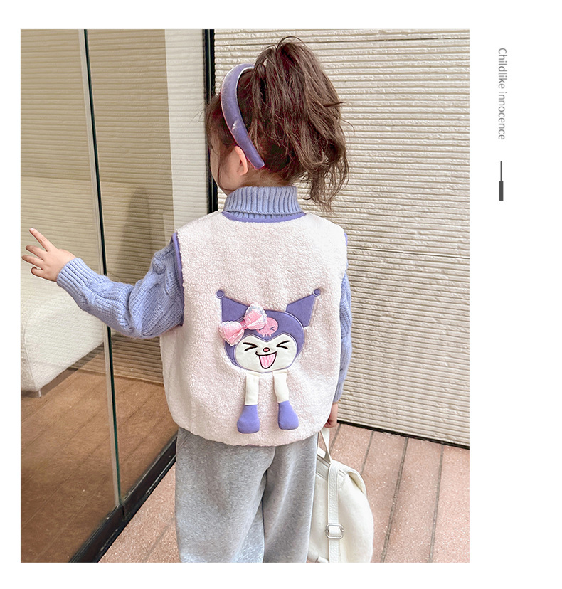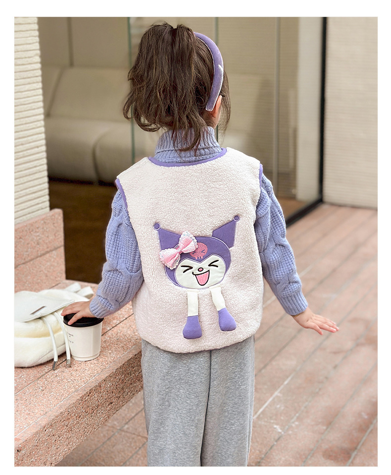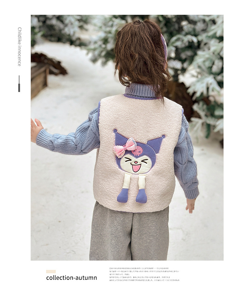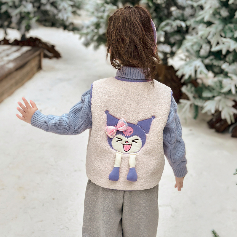 여아용 플리스 조끼 가을 겨울 2025 신상 스타일리시 아동복 만화 쿠로미 외출용 조끼 보온복
