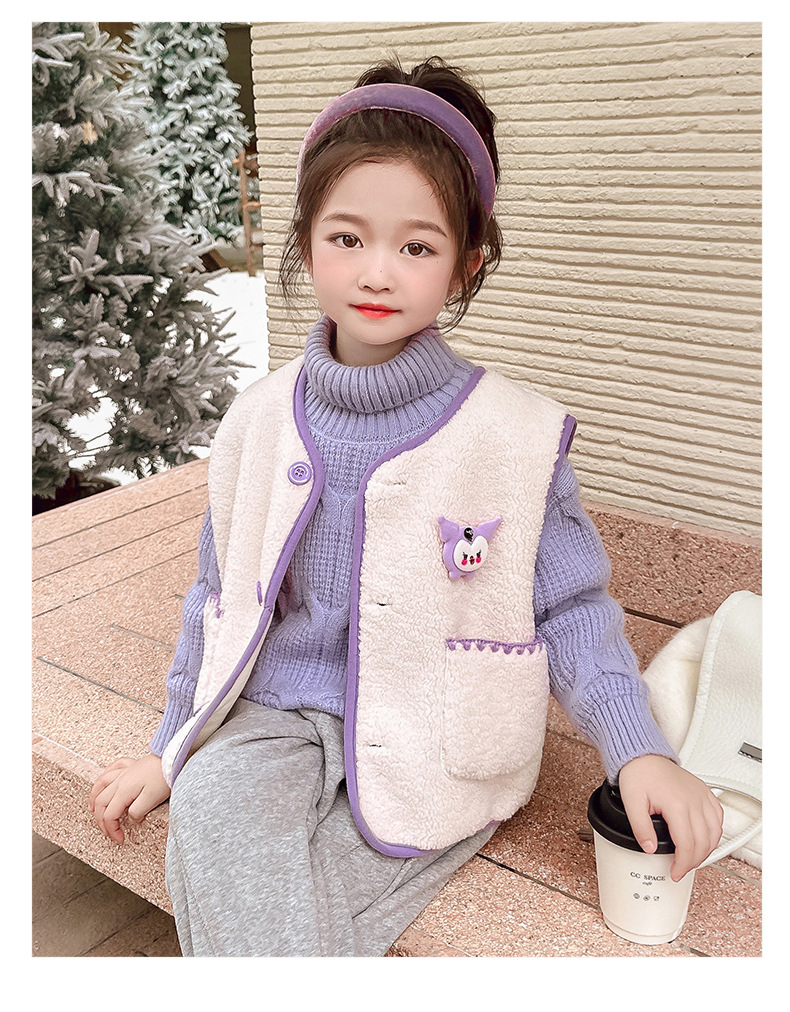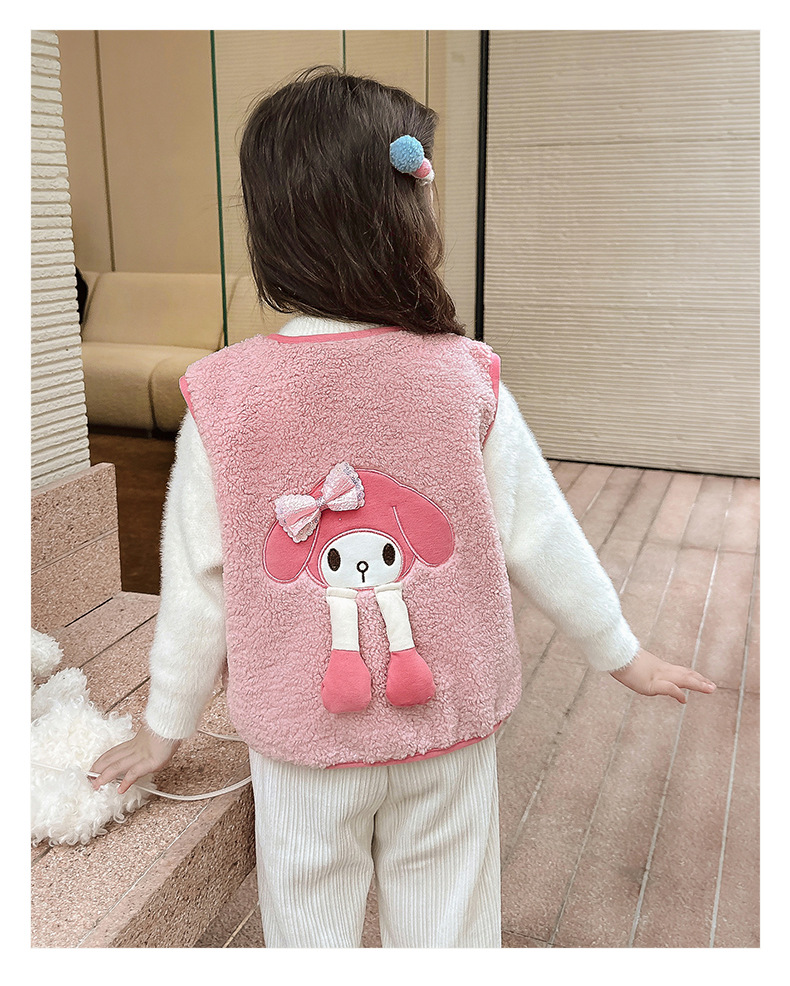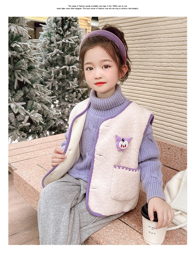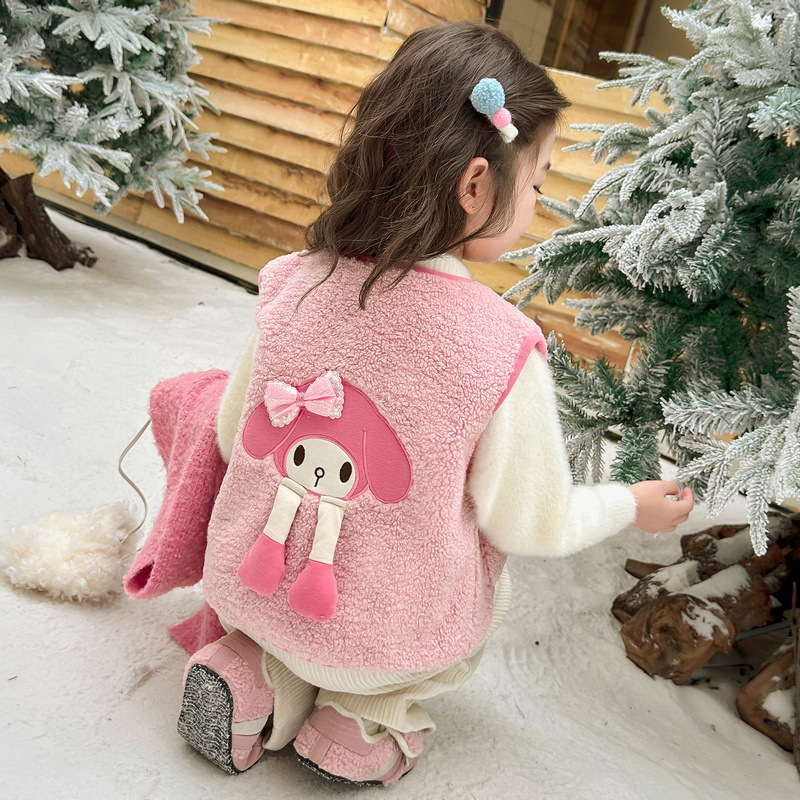 여아용 플리스 조끼 가을 겨울 2025 신상 스타일리시 아동복 만화 쿠로미 외출용 조끼 보온복