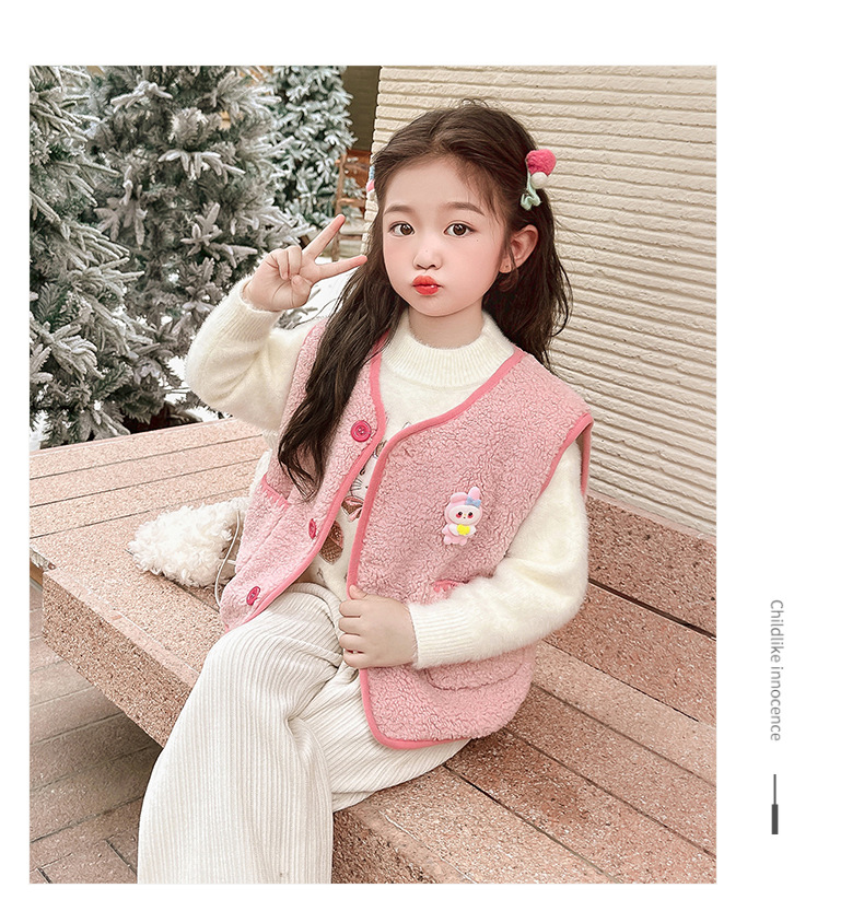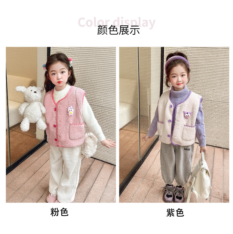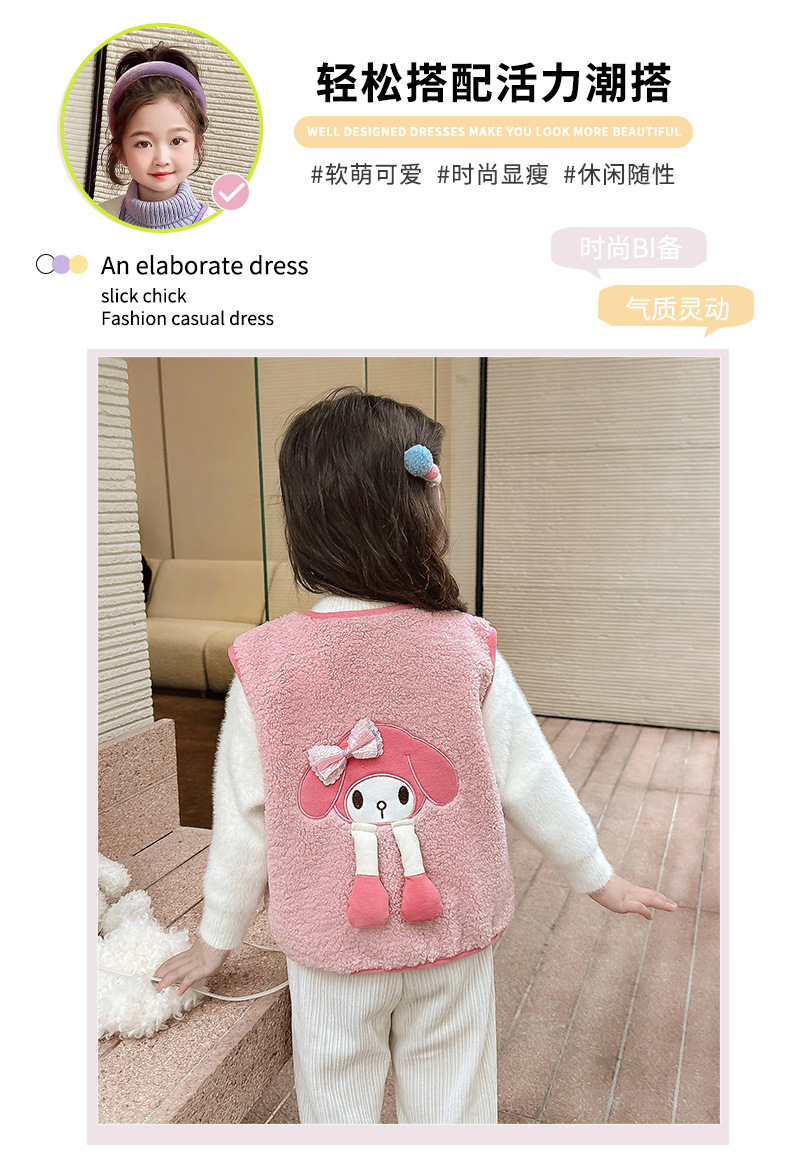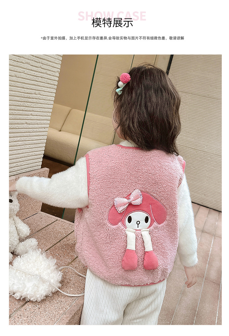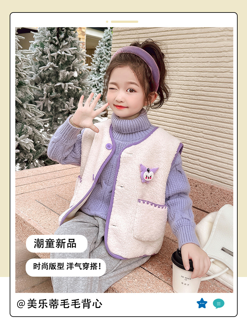 여아용 플리스 조끼 가을 겨울 2025 신상 스타일리시 아동복 만화 쿠로미 외출용 조끼 보온복스토어 가기