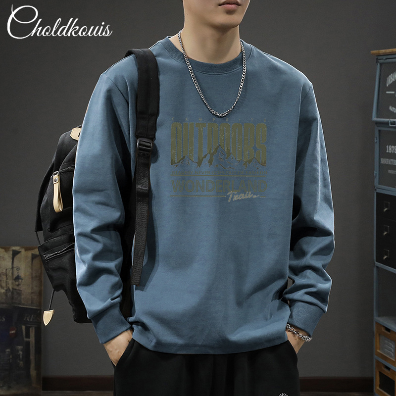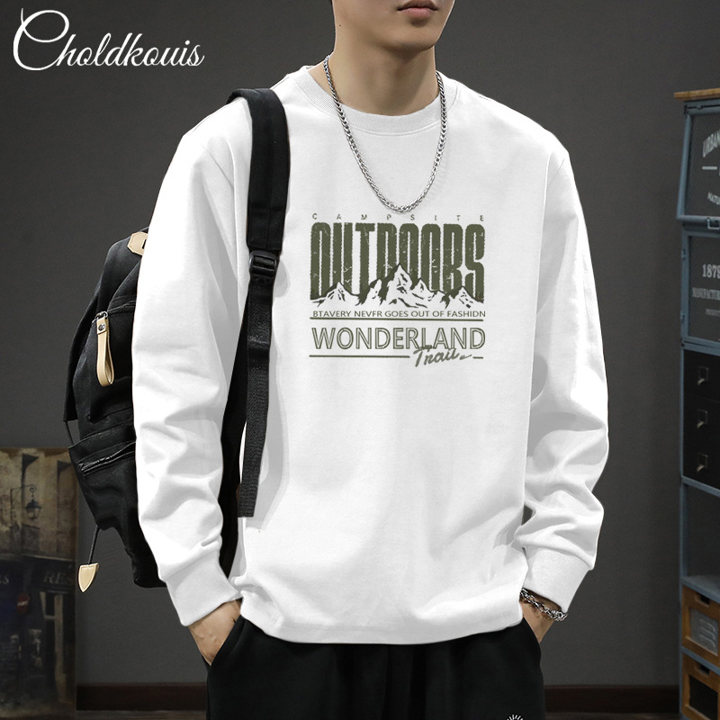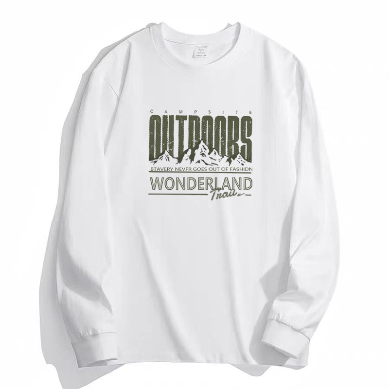 200 그램의 무거운면 흰색 긴팔 티셔츠 남성베이스 셔츠 봄과 가을 옷 남성 둥근 목 착용