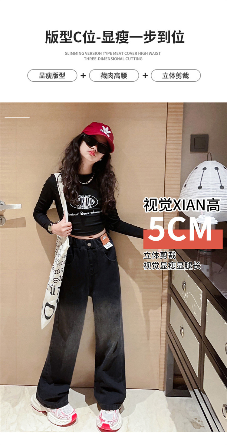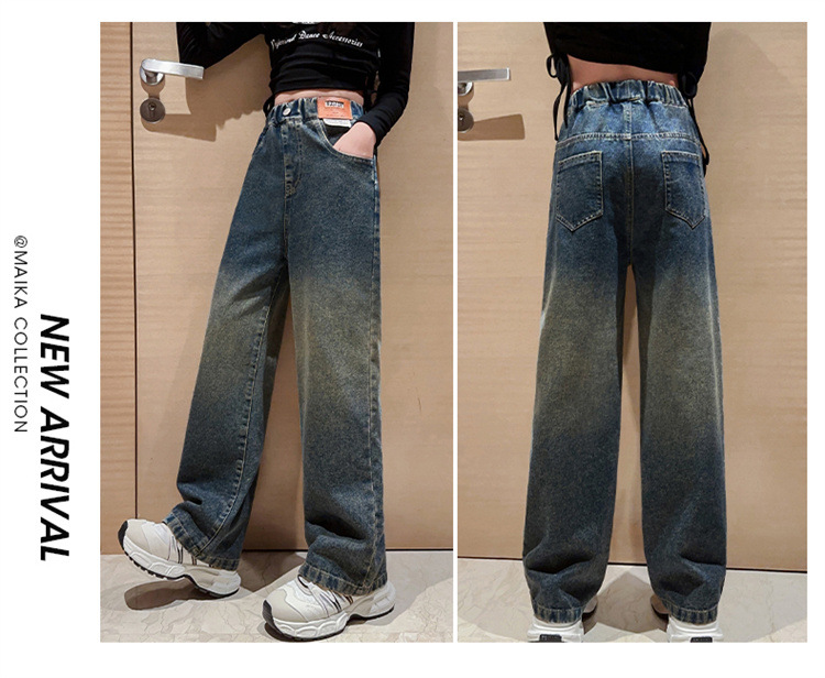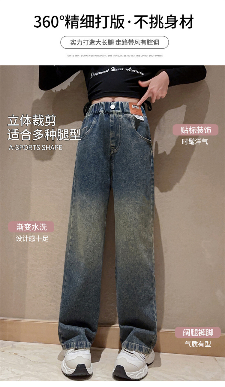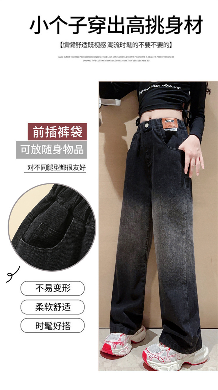 소녀 청바지 2024 년 봄과 가을 새로운 한국 스타일 큰 어린이 넓은 다리 바지 어린이 캐주얼 스트레이트 바지 서양식 대외 무역스토어 가기