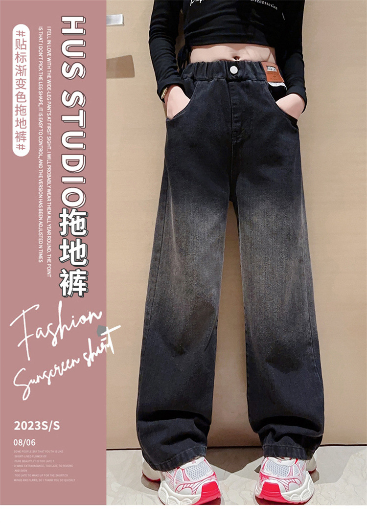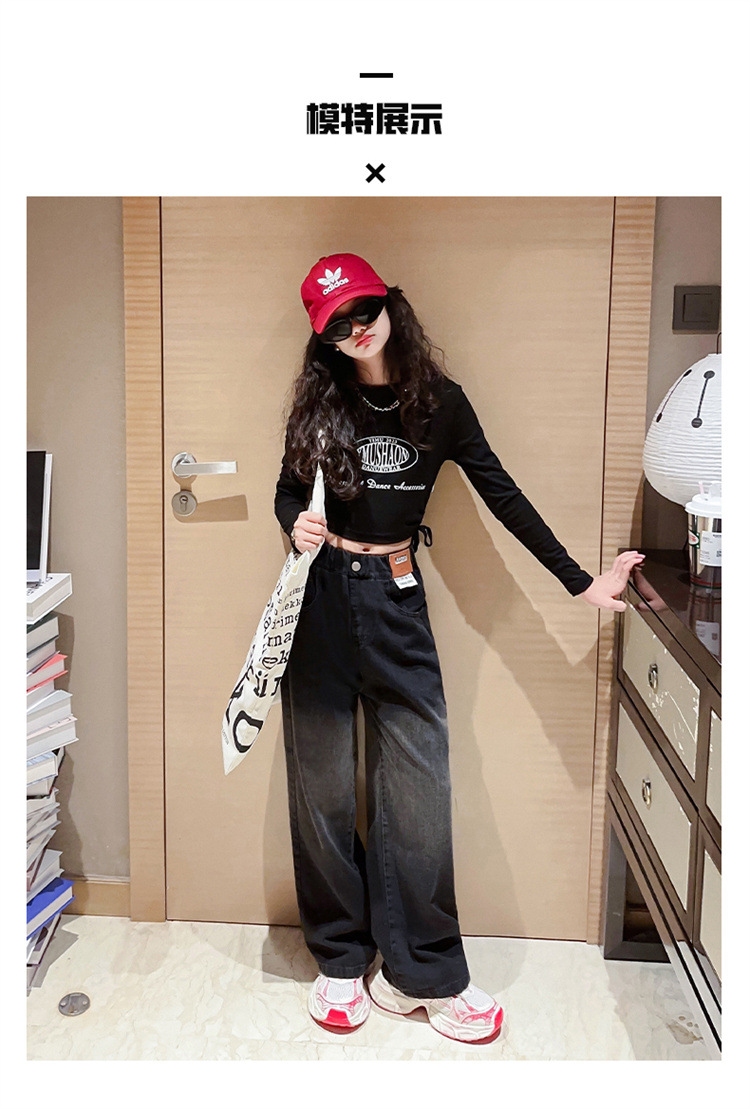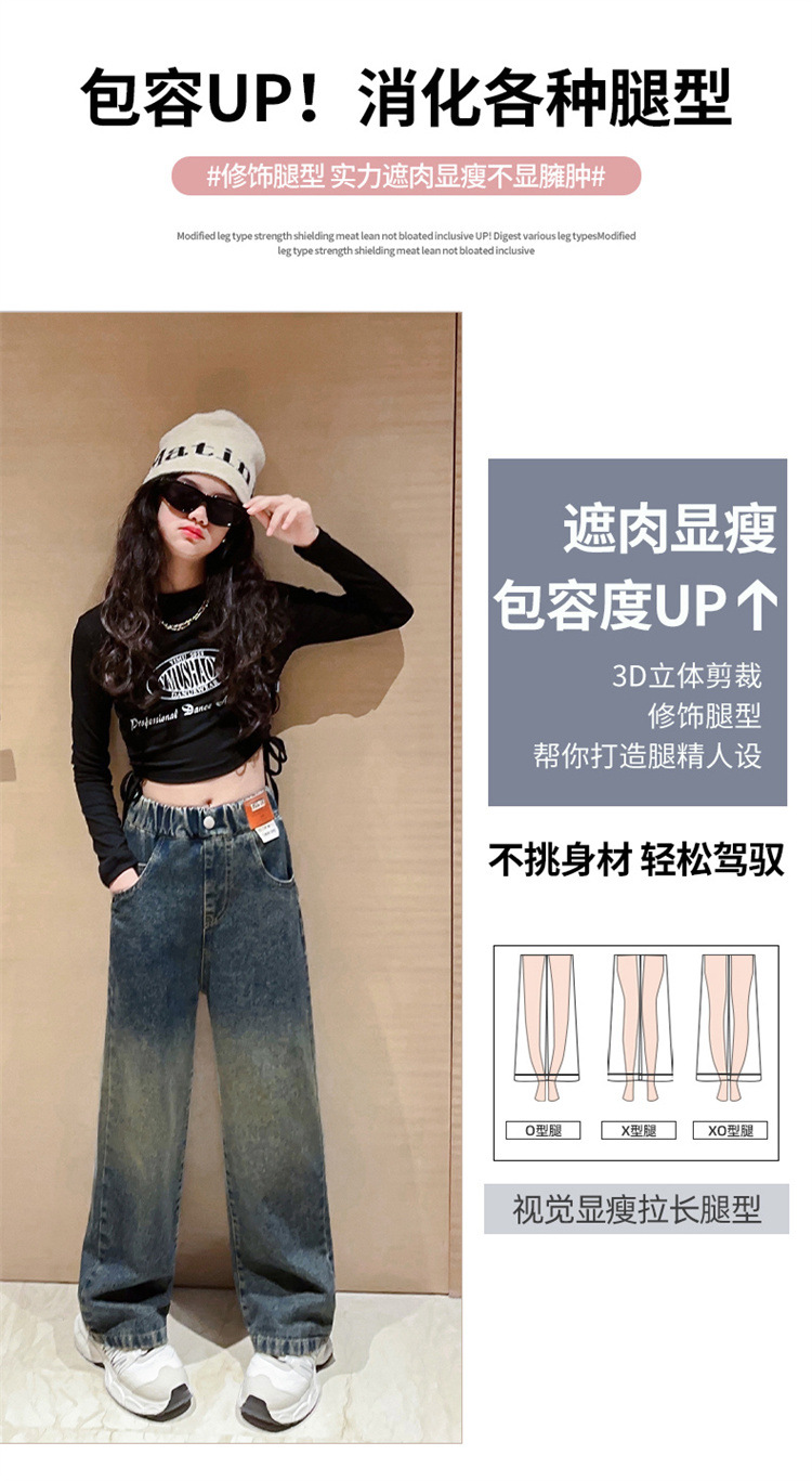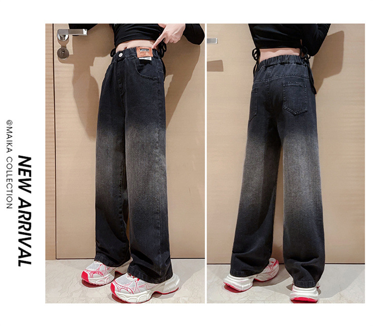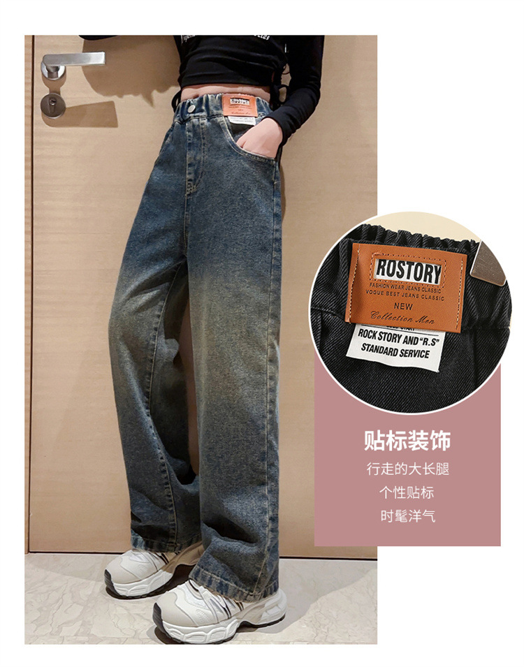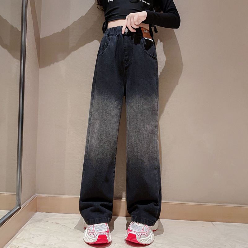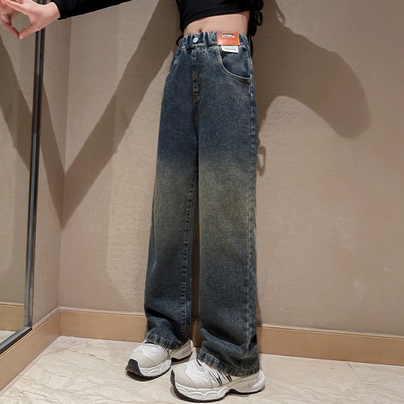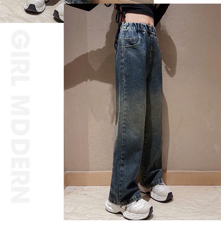 소녀 청바지 2024 년 봄과 가을 새로운 한국 스타일 큰 어린이 넓은 다리 바지 어린이 캐주얼 스트레이트 바지 서양식 대외 무역